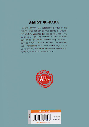 © 2019 Tatsuya Endo KAZÉ MangaTwilight ist der beste Spion von Westalis. Weil er ständig verkleidet auftritt, kennt kaum jemand sein Gesicht. Er kann sich als jede Person verkleiden und um an seine Zielperson zu gelangen, kann er auch jede Frau verführen. Nun ist ein hoher Diplomat des Landes in Ostania getötet worden. Der Geheimdienst vermutet, dass von radikalen Parteien so ein Krieg zwischen Westalis und Ostania ausgelöst werden soll. Twilights Auftrag besteht nun darin, dass Vertrauen des sehr misstrauischen Vorsitzenden der Nationalen Einheitspartei, Donovan Desmond, zu erschleichen. Desmond ist allerdings so misstrauisch, dass er niemanden an sich heran lässt. Öffentlich tritt er nur in der Schule seines Sohnes in Erscheinung. Aus diesem Grund benötigt Twilight nun ein Kind. Denn nur so kann er unerkannt in die Schule gelangen. Twilight ist erschüttert. Denn daran, eine Familie gründen hat er bei seinem Beruf noch nicht gedacht. Doch da die Zeit drängt, geht er systematisch an die Arbeit. So ist eine große Wohnung für die Familie von Loid Forger,wie sein Deckname nun lautet, schnell gefunden. In einem kleinen Waisenhaus sucht er nach einem geeigneten Kind und findet Anya. Anya sieht zwar sehr jung aus, aber zu Loids Erstaunen ist sie sehr intelligent. So sieht er keine Probleme darin, dass sie die Aufnahmeprüfung der Schule schafft. Was Loid nicht weiß, ist, dass Anya in einem Labor großgezogen worden ist und durch Experimente, die an ihr durchgeführt worden sind, auch Gedanken lesen kann. Aber sie konnte fliehen und sucht nun ihre richtige Mutter. Loid, der nichts von Anyas Fähigkeiten ahnt, will, dass sie für die Aufnahmeprüfung büffelt. Das ist für Anya völlig ungewohnt, das sie bislang alles in den Köpfen der Erwachsenen gelesen hat. Da aber in der Prüfung nur Schüler sitzen, die auch Probleme mit den Aufgaben haben, ist es gut, dass sie geübt hat. So schafft sie die Prüfung. Doch zu Loids Entsetzen soll ein Vorstellungsgespräch mit beiden Elternteilen folgen. So muss er sich schnell eine Frau beschaffen. Der Manga ist eine blutige Agentenkomödie. Drei Menschen, von denen jeder ein tödliches Geheimnis hat, müssen zusammen leben. Dennoch haben sie alle Gründe, die Zweckgemeinschaft aufrecht zu erhalten. Aber keiner von ihnen Erfahrung mit dem richtigen Leben. Da sie auch für ihr Alltagsleben ihre Fähigkeiten nutzen, ist die Serie sehr humorvoll. Grafisch ist der Manga gelungen. Die Charaktere, auch die Nebencharaktere, sind sauber gezeichnet. Die Frisuren sind detailliert und unterschiedlich. Die Gefühle werden sehr genau dargestellt, auch wenn versucht wird, sie zu unterdrücken. Die Kleidung ist durch die unterschiedlichen Missionen sehr unterschiedlich, wobei sie gut zu den Personen und ihren Rollen passen. Dabei ist auch die Kleidung der Körperhaltung angepasst. Die Accessoires wie Brillen oder Waffen sind ebenfalls gut dargestellt. Die Kämpfe und Verfolgungsjagden sind sind dynamisch umgesetzt. Die Hintergründe sind sehr sauber und detailliert gezeichnet. |