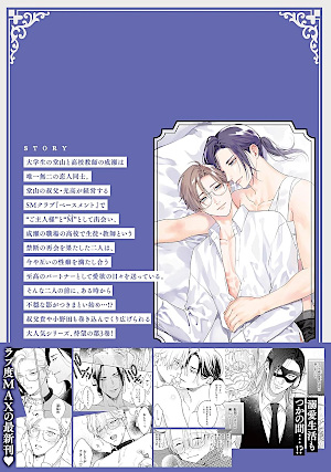 ![]() © 2021 Atami Michinoku HayabusaDas „Basement“ ist ein diskreter Club, in dem Mitglieder ihren Sado-Maso-Neigungen frönen können. Dabei kommen sie nur mit den Angestellten in Kontakt, um Peinlichkeiten zu vermeiden. Auch die Angestellten sind maskiert, damit man sie nicht wiedererkennen kann. Der Lehrer Makoto Naruse will aber die Mitgliedschaft in dem Club kündigen, denn er darf an einer Jungen-Elite-Schule unterrichten und will daher seinen Ruf nicht gefährden. Weil es sein letzter Besuch im „Basement“ sein wird, bittet Makoto seinen „Master“ darum, die Regeln zu brechen und ihm sein Gesicht zu zeigen, was dieser auch tut. Die Klasse, die Makoto unterrichten soll, steht kurz vor dem Abschluss. Zu seinem Erstaunen entdeckt er den Schüler Kiyotaka Doyama, der genauso aussieht, wie sein ehemaliger Master im „Basement“. Als sie sich später im Flur begegnen, stellt er auch fest, dass Kiyotaka genauso riecht. Allerdings macht Kiyotaka es auch klar, dass er Makoto erkannt hat, indem er ihn mit dem Kosenamen anspricht, den er ihm im Club gegeben hat. Makoto weiß nicht, wie er mit der Situation umgehen soll. Er beschließt, in der Beziehung professionell wie ein Lehrer zu bleiben. Allerdings macht ihm das Kiyotaka nicht einfach. Denn der schwänzt gerne mal den Unterricht. Von den anderen Lehrern erfährt Makoto, dass Kiyotaka für das Schwänzen bekannt ist. Sie tolerieren es aber, solange seine Leistungen stimmen. Dennoch beschließt Makoto, Kiyotaka zu einem Gespräch zu laden. Zunächst verläuft das Gespräch normal, bis Makoto die Erinnerungen wieder hochkommen. Daraufhin bricht Kiyotaka das Gespräch abrupt ab. Als Kiyotaka Makoto im Schulflur wieder über den Weg läuft, flüstert er ihm zu, dass er ihn gerne wieder an ihrem gewohnten Ort sehen möchte. Der Manga ist eine erotische Liebesgeschichte zwischen einem Lehrer und seinem Schüler. Während sich Kiyotaka überlegt, wie er mit der Situation umgehen soll, ist Makoto eher verzweifelt. Er versucht professionell zu bleiben, aber sein Körper und seine Gedanken gehorchen ihm in Kiyotakas Gegenwart nicht mehr. Grafisch ist der Manga recht ordentlich. Die Charaktere und Nebencharaktere sind sauber und detailliert gezeichnet. Durch unterschiedliche Frisuren und Makotos Brille wirken sie auch individuell. Ein Manko des Mangas ist es allerdings, dass Kiyotaka für einen Oberschüler viel zu alt wirkt. Teilweise sieht er sogar älter als Makoto aus. Die Kleidung der Charaktere ist ordentlich gezeichnet. Makoto trägt im Dienst einen Anzug, während Kiyotaka unterschiedliche Kleidung trägt. Allerdings wirkt diese Kleidung glatt und konturlos. Bei den erotischen Spielen wird mehr auf Details geachtet. So ist das Halsband und die Wäsche von Makoto ebenso gut umgesetzt wie der dienstliche Anzug von Kiyotaka. Nackt zeigt sich, dass Makoto gut gebaut ist; Kiyotaka hingegen wird nicht nackt gezeigt. Die erotischen Szenen werden aber auch unzensiert dargestellt. Die Umgebung der Charaktere ist sauber, aber auch einfach gezeichnet. |
