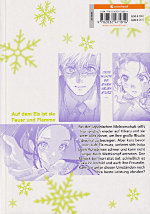 © 2020 Ikada Tsurumaikada CrunchyrollTsukasa Akeuraji ist ein Eiskunstläufer aus Leidenschaft. Leider hat er zu spät damit angefangen und so hat er es verpasst, ein Profi zu werden. Da er nicht gegen die Konkurrenz bei den Meisterschaften mithalten konnte, reichte es bei ihm nicht einmal zu einem Platz in einer Eislaufrevue. So sucht Tsukasa einen Job, der mit dem Eislauf zu tun hat und sieht währenddessen die Kinder auf dem Eis ihre Kreise drehen, die hoffen, eines Tages bei Wettkämpfen dabei sein zu können. Tsukasa weiß aber, dass nur die Wenigsten von ihnen es schaffen können. Während er sich umschaut, fällt ihm ein Mädchen auf, dass sich den Eintritt beim alten Sekoma erschlichen hat. Als er es zur Rede stellen will, flüchtet sie allerdings aus dem Eisstadion. Tsukasa verfolgt es und kann es schließlich auch einholen. Das Mädchen, Inori Yuitsuka, erzählt ihm von ihrem Traum, dass sie auch eine Eiskunstläuferin werden will. Doch Tsukasa ernüchtert sie etwas, indem er ihr erklärt, dass sie ohne Trainer diesen Traum niemals verwirklichen könnte. Aber er gibt ihr eine Liste von Vereinen, die Kinder trainieren. Kurz darauf wird Tsukasa von Hitomi Takamine zu einem Vorstellungsgespräch eingeladen. Er soll Assistenztrainer werden, da sich zuletzt viele Kinder angemeldet haben. Mitten in das Vorstellungsgespräch platzt Frau Yuitsuka, die ihre Tochter zum Training anmelden möchte. Es ist tatsächlich Inori, die ihre Mutter überreden konnte. Allerdings redet Frau Yuitsuka Inori absichtlich schlecht, da sie ihr die Hoffnung nehmen will. Inoris ältere Schwester hat Frau Yuitsuka als Talent angesehen und sie hat unter dem Druck aufgegeben. Da Inori aber in der Schule schlecht ist und sie deswegen dort gemobbt wird, ist das Eislaufen ihre einzige Freude. Tsukasa kann so dem Gespräch nicht mehr zuhören und auch wenn er noch nicht angestellt ist schnappt er sich Inori und lässt sie vorlaufen. Dabei stellt sich heraus, dass sie schon einiges aus den Büchern ihrer Schwester gelernt hat. Außerdem hat sie keine Angst davor, auf das Eis zu fallen. Und Tsukasa sieht in ihr einen Ehrgeiz, bei dem er merkt, dass sie ihr Ziel bis zum Ende verfolgen will. Der Manga ist ein Sportmanga, in dem ein Talent, dass zunächst schlechte Aussichten hat, sich bis an die Spitze empor arbeiten will. Dabei muss sie nicht nur hart trainieren, damit sie die die Anforderungen schafft. Sie muss sich auch gegen andere Kinder behaupten, die auf sie herabsehen. Grafisch ist der Manga sehr gut. Die Charaktere sind unterschiedlich und sehr sauber gestaltet. Die Haare sind sehr detailliert gezeichnet. Die Gesichter sind größtenteils sehr fein dargestellt und Gefühle, besonders die von Inori, werden dadurch gut gezeigt. Besonders große Gefühle werden allerdings einfacher und übertrieben dargestellt. So wie die Gesichter wird auch die Kleidung gezeigt. Die Kleidung selber ist größtenteils eher einfach gestaltet. Allerdings ist sie mit Falten detailliert dargestellt und gut den Posen angepasst. Der Sport selber wird mit Speedlines, Perspektiven und auch verschwommenen Darstellungen sehr dynamisch dargestellt. Gegenstände sind dagegen etwas einfach umgesetzt. Die wenigen Hintergründe sind dagegen sauber gezeichnet. |