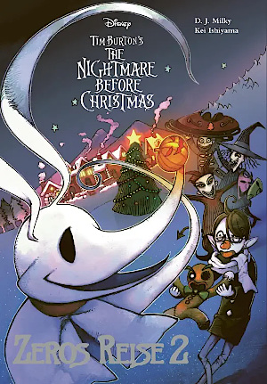 © 2018 Kiyoshi Arai / Dan Conner David Hutchison / Kei Ishiyama / Disney D.J. Milky Carlsen VerlagJack Skellington arbeitet in Halloween Town im Auftrag des Bürgermeisters an einer wichtigen Aufgabe. Er will über ein Portal alle Feiertage miteinander verbinden. Aber er schafft es nicht, vernünftig in dem Portal zu navigieren. Eigentlich will Jack dann Dr. Finkelstein um Hilfe fragen. Aber dann kommt ihm sein Geisterhund Zero dazwischen, der mit ihm spielen will. Als Jack darauf eingeht, spring Zero plötzlich in das Portal und verschwindet. Sofort beginnt Jack mit der Suche nach ihm und mobilisiert auch alle Bewohner von Halloween Town. Da Zero sehr beliebt ist, suchen alle mit, finden aber keine Spur von ihm. Erst Sally hört in dem Portal zu Christmas Town Zeros bellen. Zero hingegen schwebt verängstigt in Christmas Town herum. Zwar kommt ihm die Eule Schuhuu zu Hilfe, die ihn zu der Elfe Jouelle bringt. Diese versucht Zero das Weihnachtsfest beizubringen, aber er will zurück zu Jack. So irrt er hungrig durch die Stadt und begegnet am Ende überraschend einem alten Bekannten. Jack hingegen vertraut bei der Suche nach Zero auf Lock, Shock und Barrel. Doch anstatt ihn zu suchen, stellen sie Christmas Town auf den Kopf. In dem Manga geht es um eine weitere Geschichte von Jack Skellington in Halloween Town. Dieses mal geht es nach Christmas Town, wo sich Zero hin verirrt hat. Auch wenn Jack nur beste Absichten hat, wird es dort ein turbulentes Chaos angerichtet. Grafisch ist der Manga in Ordnung. Die Charaktere sehen etwas schräg aus, aber das passt zu den Rollen, die sie in Halloween Town spielen. Da sie sehr individuell aussehen, erkennt man sie auch immer sofort wieder. Über die großen Münder können sie auch gut ihre Gefühle zeigen. Die Gegenstände und Hintergründe sind sehr sauber und detailliert getroffen, wobei sie genauso schräg aussehen, wie die Charaktere. Die einzigen etwas unsauberen Zeichnungen sind die Zeichnungen in den Büchern, die dort die Geschichten illustrieren. |