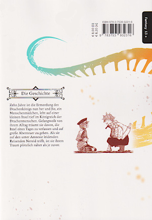 © 2024 Ao Hatesaka AltraverseDie junge Jio lebt im Königreich Laniakea auf einer kleinen Insel. Das Leben dort ist aber so langweilig, dass es Jio in die große weite Welt hinauszieht und sie dort Abenteuer erleben will. Leider hat ihr Vater, der Tausendfüßler-Drache Halley etwas dagegen. Er will, dass Jio im Dorf bleibt und erklärt ist, dass die ganze Welt schon erforscht ist und es keine Gegenden mehr gibt, die es noch zu erforschen gilt. Außerdem will er Jio nicht ziehen lassen, da sie die Tochter des Dorfvorstehers ist. Und wenn sie für ein Abenteuer die Insel verlässt, gibt sie ein schlechtes Vorbild für die anderen Inselbewohner ab. Jio zieht sich schmollend zum Angeln an den Strand zurück. Dort angelt sie allerdings einen Jungen aus dem Meer. Da er sich nicht an seinen Namen erinnern kann, nennt sie ihn Nereid. Er reist durch die Welt, auf der Suche nach seinem verlorenen Gedächtnis. Jio beneidet ihn darum, dass er so frei reisen kann. Sie begleitet Nereid aber zum Strand, von wo aus er mit Hilfe eines einfachen Rettungsrings weiter schwimmt. Auf dem Weg zurück zum Dorf läuft Jio ihrem Vater über den Weg. Doch zu ihrer Überraschung gibt er sie frei. Jio soll sogar möglichst sofort die Insel verlassen und nicht wiederkommen. Als Halley ins Licht tritt, sieht Jio, dass er schwer verletzt ist. Der Drachenritter Yerkes hat Halley so zugerichtet. Denn er ist auf der Suche nach Jio, die wegen Hochverrats zum Tode verurteilt. Es stellt sich heraus, dass Jio die Tochter des legendären Abenteurer Yuri Holst ist. Halley hat sie jahrelang nur auf der Insel versteckt. Denn Yuri wird als Mörder des Herrschers, des Drachenkönigs gesucht. Da wegen der Tat seine gesamte Blutlinie ausgelöscht werden soll, soll Jio jetzt sterben. Auch wenn Yerkes Jios Vater schwer verletzt hat, gibt sie nicht auf. Sie kann Yerkes zunächst abwehren, aber er ist zu stark. Doch dann taucht auf einmal Nereid wieder auf und besiegt Yerkes. Es stellt sich heraus, dass Nereid auf der Suche nach Yuri Holst ist. Da die Insel für Jio nicht mehr sicher ist, flieht sie danach mit ihm zusammen. In dem Manga geht es um die Flucht von einem gesuchten Mädchen und einem Drachenjungen. Aber sie belassen es nicht dabei, sich zu verstecken. Sondern sie helfen auch verschiedenen Bewohnern dabei, Konflikte zu lösen. Oder sich gegen die Obrigkeit zu wehren. Aber mit der Zeit entdeckt Jio Nereids Geheimnis. Grafisch ist der Manga durchwachsen. Die Charaktere sind etwas einfach und teilweise schräg gestaltet. Die Haare und Gesichter sind unterschiedlich und wenig detailliert dargestellt. Die Kleidung ist sehr unterschiedlich, von einfachen Hemden bis zu der Fantasieuniform von Jio. Aber sie ist ordentlich gestaltet. Die Gegenstände sind eher einfach gezeichnet. Die Drachen sind Menschen, deren Superkräfte über die verschiedenen, knöchernen Schwänze dargestellt werden. Die Kämpfe untereinander sind sehr dynamisch, wobei die Magie oft mit Strahlen oder Explosionen gezeichnet werden. Die Hintergründe des Mangas sind detailreich gestaltet. |