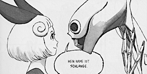![]() © 2019 Macchiro / Orval Manga CultDie junge Alice wacht in einem leeren Raum auf. Nur eine Tür, auf der die Nummer 430 steht, ist darin. Und auf ihrer Hand entdeckt sie die Nummer 431. Plötzlich taucht eine riesige Schlange auf, um Alice die Regeln dieser Residenz zu erklären. Der Raum, in dem sie sich befindet, erfüllt ihr jeden Wunsch. Aber sobald sie ihn verlässt, beginnt ihr Körper zu verrotten. Als 431. Gast lebt Alice in Raum 431. Sobald der 666. Gast erschienen ist, wird gemeinsam eine Party gefeiert und niemand mehr kann die Residenz verlassen. Allerdings hat Alice genau das vor. Sie will lieber in ihrer Welt leben, auch wenn diese komplett durch einen Krieg zerstört ist und dort niemand mehr lebt. Die Schlange erklärt ihr, dass sie die Residenz nur durch den Raum 000 verlassen kann, nur dort befindet sich ein Ausgang. Um dorthin zu gelangen, muss sie durch alle Räume der anderen Gäste laufen. Aber bis sie dort angekommen ist, ist ihr Körper bestimmt dürr und verrottet. Da die Räume nach den Wünschen der Gäste gestaltet sind, sind sie sehr unterschiedlich. Der erste Raum ist ein Gerichtssaal, in dem ein riesiger mechanischer Richter seine ehemaligen Klassenkameraden und Lehrer wegen Mobbing zum Tode verurteilt. Die Schlange beschließt, dass der Raum nichts für die Augen kleiner Kinder ist, bringt sie Alice schnell weiter. Im nächsten Raum fällt Alice in den Himmel, bis sie weich landet. Denn der Bewohner hat es sich gewünscht, ein Vogel zu werden. Doch Alice will nicht in einer Lügenwelt leben, auch wenn sie sehr verlockend ist. Der nächste Raum ist gefährlich. Alice wird sofort von einem Monster entführt. Glücklicherweise wird sie von dem Held, Prinz Erklam, gerettet. Schnell erkennt Alice, dass der Bewohner mit dem Raum sein geringes Selbstbewusstsein kompensieren muss. Als die leicht bekleideten Damen auftauchen, um den Held zu bejubeln, verschwindet Alice schnell durch die nächste Tür. In dem Manga geht es um ein Mädchen, dass dem ewigen Glück entkommen will. Es gerät dabei in verschiedene Welten, die denen von Alice im Wunderland ähneln. Aber es stellt sich heraus, dass Alice anscheinend mehr über die Welt weiß, als es zunächst den Anschein hat. Grafisch ist der Manga gelungen. Die Charakter sind sauber gezeichnet, wobei Alice auch übertrieben niedlich dargestellt wird. Aber es gibt noch verschiedene andere Menschen, die detailreich dargestellt sind. Die Hintergrundcharaktere sind zwar auch detailreich, aber auch etwas einfacher gezeichnet. Dennoch können sie gut ihre Gefühle zeigen. Die Kleidung ist unterschiedlich. Alice trägt ein einfaches Kleid, andere Charaktere tragen Rüstungen, Anzüge, Bikinis oder sind gleich nackt. Einige Charaktere werden aber auch verzerrt dargestellt. Die Schlange hat einen einfachen Kopf mit großen Zähnen. Aber sie hat auch einen langen schuppigen Körper. Andere Tiere sind sauberer und detailliert gezeichnet. Als Kontrast dazu ist Alices Krankheit, die sie komplett verunstaltet. In einigen Räumen werden auch blutige Rituale veranstaltet. Dennoch fehlen richtige Splattereffekte. Die Gegenstände wie Bücher sind sehr sauber und detailreich umgesetzt. Auch die Hintergründe sind detailreich gezeichnet. |