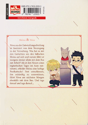 © 2019 Niyama Loewe MangaDem Angestellten Junpei Niwa fällt Ryo Shiina als neuer Angestellter in der Firma auf. Als er sich mit seinem Vorgesetzten Honda über ihn unterhält, werden sie allerdings von anderen Mitarbeitern homophob beleidigt. Denn von beiden ist bekannt, dass sie schwul sind. Am nächsten Tag fällt Niwa auf, dass Shiina den Bus nimmt. Anscheinend haben sie ungefähr den gleichen Arbeitsweg und wollen beide früher auf der Arbeit sein. Als Niwa abends Shiina trifft, der auf den Bus wartet, lädt er ihn spontan ein, ihn mit dem Auto mitzunehmen. Doch unterwegs wird es Shiina plötzlich schlecht. Er erklärt Niwa, dass er öfters solche Anfälle im Auto hat. Deswegen fährt er auch lieber früh morgens mit dem Bus, damit er, falls ihm schlecht wird, niemanden stört. Shiina ist deswegen zwar in Behandlung und nimmt Medikamente, aber dennoch vermisst er jemanden, der ihn unterstützt. Als Shiina am nächsten Morgen in den Bus steigt, sitzt Niwa schon darin. Shiina glaubt zunächst an einen Zufall, aber auch die nächsten Tage fährt Niwa mit ihm Bus. Einige Tage später steht ein Betriebsausflug mit dem Bus an. Weil es darin bestimmt voll und laut ist, bietet Niwa Shiina an, ihn mit dem Auto zu fahren. Auch wenn er dafür extra Kosten beantragen muss. Doch Shiina lehnt ab. Dennoch will er wissen, warum Niwa das alles auf sich nimmt. Niwa hat im Internet nach Shiinas Krankheit gesucht und mitbekommen, dass es sehr hilft, wenn sich jemand um den Kranken kümmert. Shiina ist von der Hilfsbereitschaft überrascht. Und noch mehr, als er erfährt, dass Niwa in keiner Beziehung ist. Denn bei den Frauen der Firma scheint Niwa sehr beliebt. Weil Niwa Shiina ständig hilft und in seiner Nähe ist, wenn er mit dem Auto fahren muss, kommen sie sich langsam näher. In dem Manga geht es um zwei Büroangestellte, die sich langsam näher kommen. Niwa ist zwar schwul und Shiina ist sein Typ, aber zunächst steht bei ihm die Hilfsbereitschaft im Vordergrund. So dauert es ein wenig, bevor sie Gefühle für einander entwickeln. Der Band enthält noch die Kurzgeschichte „in Kuss für den Fuchs“. Grafisch ist der Manga eher einfach gestaltet. Die Charaktere sind einfach gezeichnet und ähneln sich ein wenig. Die Gesichter unterscheiden sich neben der Haarfarbe hauptsächlich durch die Breite. Die Gefühle sind klar, werden aber auch nur einfach gezeigt. Auch die Geschäftskleidung, die sie tragen, ist wenig detailliert gestaltet. Aber auch wenn Falten die Kleidung nur wenig auflockert, passt sie so gut zu den übrigen Zeichnungen. Es gibt nur wenig erotische Szenen, in denen normale Körper gezeigt werden. Sexuelle Handlungen finden nur verdeckt statt. Die Gegenstände wie Taschen sind sauber und detailliert gezeichnet. Die wenigen Hintergründe sind meistens eher einfach gestaltet. Detailliert gezeigt werden sie nur, wenn es sich um die Natur mit Pflanzen handelt. |