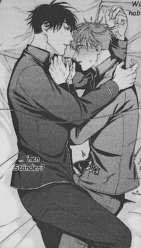 ![]() © 2023 Senmu Sakishita HayabusaKeiichi Hozumi ist jung und erfolgreich. Als er verkündet, dass er eine eigene Firma gründen will, bittet ihn sein enger Freund aus Studientagen, Ibuki Hiiragi, ihn mitzunehmen. Jahre später ist Ibuki der persönliche Sekretär von Keiichi. Neben den Aufgaben im Büro, die er perfekt erfüllt, muss er auch dafür sorgen, dass Keiichi, dessen Wohnung an das Büro grenzt, morgens aus dem Bett kommt. Das ist schwierig, denn Keiichi ist nicht nur ein Langschläfer, sondern er trinkt abends viel und kann ohne Begleitung nicht einschlafen. So muss Ibuki auch Keiichis Frauen aus der Wohnung werfen. Dennoch ist Keiichi mit Ibukis Arbeit sehr zufrieden. Allerdings übermittelt der auch die Nachricht von Keiichis Mutter, dass er endlich heiraten soll. Keiichi ist frustriert, denn trotz vieler Frauenbekanntschaften hat er noch nicht die passende Frau gefunden. Aus einer Laune heraus, lädt er Ibuki ein, einen Dreier zu veranstalten. Als Ibuki abends in den Sexclub kommt, in dem Keiichi seine Frauen aufreißt, hat der zwar schon eine willige Frau gefunden, ist aber auch schon komplett betrunken. So schnappt sich Ibuki Keiichi trotz Protesten und schleppt ihn nach Hause. Da Keiichi aber nicht alleine schlafen kann, bietet ihm Ibuki an, mit ihm Sex zu haben. Denn seit dem Studium ist er heimlich in ihn verliebt. Betrunken, wie er ist, meint Keiichi, dass er am besten Ibuki heiraten sollte, da der sich so gut um ihn kümmert. Am nächsten Morgen verkündet Ibuki, dass Keiichi von nun an keine Frauenbekanntschaften mehr suchen muss, da ab nun er nachts neben Keiichi schlafen wird. Der Manga erzählt die einfache Geschichte zweier Kommilitonen, die so eng befreundet sind, dass der eine sich um alle privaten Angelegenheiten des anderen kümmern kann. Doch dann wird aus ihrer freundschaftlichen Beziehung mehr und das erotische Zusammenleben beginnt. Grafisch ist der Manga eher nur durchschnittlich. Die Charaktere unterscheiden sich hauptsächlich durch die Größe und Haarfarbe und sind nur einfach dargestellt. Die Haare sind strubbelig, wobei Ibuki und Keiichi leicht unterschiedliche Frisuren haben. Die Gesichter sind einfach gezeichnet, weshalb die Emotionen auch nur übertrieben gezeigt werden. Als Kleidung tragen die Charaktere neben Geschäftsanzügen nur einfache Shirts und Pullover. Diese sind allerdings mit den Falten und Schattierungen gut den unterschiedlichen Posen angepasst. Nackt zeigen sie muskulöse Körper, die aber nicht übertrieben wirken. Die erotischen Szenen sind vielfältig und nicht zensiert. Gegenstände und Hintergründe sind sauber, aber auch eher nur detailarm gezeichnet. |