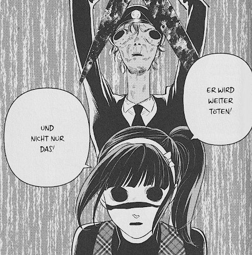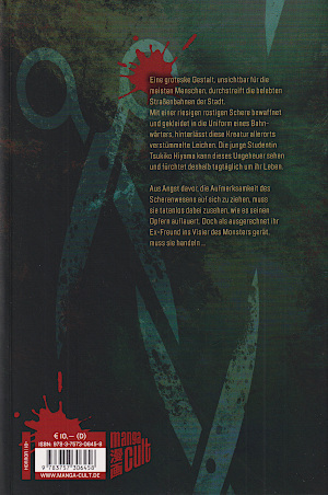 © 2022 Hakaru Takarai / Yuhei Suzuki Manga CultIn der Stadt geht ein Mörder herum, der junge Frauen mit einer riesigen, rostigen Schere tötet. Die Studentin Tsukiko Hiyama ist wegen der Erscheinung total verängstigt. Aber nicht, weil er ein unbekannter Mörder ist, sondern weil sie anscheinend die einzige Person ist, die den Totengeist Haikaisha sehen kann, wie er den jungen Frauen in der Bahn auflauert. So fährt Tsukiko mit ihrem Freund Shu Bando, als Haikaisha auftaucht und beginnt, sich für eine Schülerin zu interessieren. Aus Angst, seine Aufmerksamkeit zu erregen, macht sie sich ganz klein. Shu fällt das auch auf, aber er vermutet, dass diese Furcht ihm gilt. Als sich Tsukiko daraufhin zusammenreißt und ihm ihr Geheimnis anvertraut, glaubt er ihr nicht. Denn ihr Geheimnis ist, dass sie von klein auf Totengeister sehen kann. Weil Shu an eine Ausrede glaubt, trennt er sich von ihr, auch wenn ihn das sehr mitnimmt. Tsukiko erhält aber kurz darauf Besuch von Noguchi. Als sie ihn erschreckt vor der Tür stehen lässt, beschwört er den Geist von Akiko Mitamura. Tsukiko kennt sie, denn sie hat in der Bahn gesehen, wie sich Haikaisha für sie interessiert hat. Allerdings ist Akiko nicht an Rache interessiert, sondern sie will Haikaisha das Handwerk legen. Es stellt sich heraus, dass Noguchi zwar mit Toten reden, aber sie nicht sehen kann. Mit seiner Hilfe kann sich Tsukiko mit den Geistern unterhalten. Akiko will, dass Haikaisha schnell das Handwerk gelegt wird. Denn nur so kann sie verhindern, dass sie selbst zu einem mörderischen Totengeist wird. In der Zwischenzeit hat Shu aber auch ein paar seltsame Vorkommnisse in der Bahn. Das bringt ihn zu dem Schluss, dass Tsukiko recht gehabt hat. Er will nun auf eigene Faust hinter das Geheimnis von ihm kommen. Dach damit gerät er selber in das Blickfeld von Haikaisha, der sich bislang eher auf junge Frauen gestürzt hat. Der Manga ist eine Horrorgeschichte, in der ein unsichtbarer Totengeist Menschen mit einer riesigen Schere ermordet. Während Tsukiko Tote nur sehen kann, kann Noguchi nur mit ihnen reden. Aber es gibt noch andere Menschen, die Haikaisha sehen können. Da sie selber nicht bedroht sind, versuchen sie, ihn in Ruhe zu lassen. Auch wenn das bedeutet, dass er weiterhin morden kann. Grafisch ist der Manga gelungen. Die Charaktere sind ordentlich und detailliert gestaltet. Die Frisuren, Körper und Gesichter sind sauber und unterschiedlich gezeichnet. Die Gesichter werden allerdings etwas einfach dargestellt, können aber gut die Gefühl zeigen. Die Kleidung ist sauber gestaltet. Die Charaktere tragen unterschiedliche Freizeitkleidung, die gut zu ihren Rollen passt. Einige tragen am Abend Ausgehkleider, Tsukiko zu Hause auch mal Schlafkleidung und Bahnmitarbeiter ihre Uniformen. Die Kleidung wird detailliert dargestellt und mit Falten gut den Posen angepasst. Auch die Geister sind gut getroffen. Bezeichnend sind die leeren Augenhöhlen, da die Augen ausgestochen worden sind. Aber bei den Opfern sind auch andere Wunden zu sehen. Denn die Morde sind brutal und blutig und auch danach sind noch Details zu sehen. Die Gegenstände die Haikaishas Schere, Geschirr oder Handys sind sauber gezeichnet. Auch die Hintergründe sind detailreich dargestellt. |