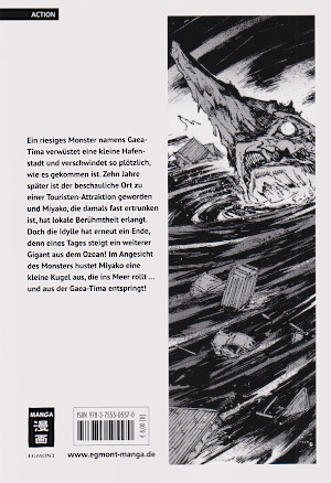 © 2023 Kent Egmont MangaVor der Stadt Sukuba ist ein riesiger Kaiju aufgetaucht, den die Bewohner Gaea-Time nennen. Mit einer riesigen Flutwelle überschwemmt er die Stadt, bevor er untertaucht und verschwindet. Wie durch ein Wunder gab es keine Opfer, aber die Gebäude der Stadt wurden zerstört. Dennoch sind die Bewohner Gaea-Time dankbar. Denn er hat schwarzen Schlamm hinterlassen, der viele Fische anlockte, wodurch die Stadt reich wurde. Die Freundinnen Miki und Miyako haben die Flutwelle überlebt, auch wenn sie fast ertrunken wären. Zahn Jahre später verabschiedet sich Miki, um in Tokio zu studieren. Miyako bleibt zurück, aber sie hat auch durch Gaea-Time eine Arbeit bekommen. Denn um ihr Trauma zu erarbeiten, hat sie gleich damit begonnen, Figuren von Gaea-Time zu erstellen. Dieses gelang ihr so gut, dass ihr Laden, die Morino GmbH inzwischen gut bekannt ist. Eines Tages besucht der Ozeanologe Tatsukuni ihren Laden. Er lobt Miyakos Figuren und findet den Gaea-Time faszinieren. Ein Gefühl, dass Miyako nicht nachvollziehen kann. Aber noch während Tatsukuni anwesend ist, geht plötzlich der Alarm los. Ein weiterer Kaiju ist aufgetaucht. Zwar hat sich die Stadt in der Zwischenzeit aufgerüstet, aber der Kaiju zerlegt die Abwehr spielend. Immerhin haben die Bewohner in den Jahren geübt, wie sie fliehen können. Als sich der Kaiju aufrichtet, sieht man, dass es sich nicht um Gaea-Time handelt. Tatsukuni ist dennoch so fasziniert von dem Kaiju, dass er, anstatt zu fliehen, zum Meer fährt, um ihn aus der Nähe zu betrachtet. Miyako läuft hinterher, um ihn zu warnen. So wollen sie gerade umkehren, als der Kaiju sie bemerkt und mit einem Schwanzschlag den Schiffsanleger zerstört, auf der sie sich befinden. Sie überleben zwar, aber können nicht fliehen. Statt dessen kommt es Miyako so vor, als würde das Kaiju sie genau mustern. Doch dann hustet Miyako plötzlich eine Murmel aus, aus der Gaea-Time entschlüpft. Und der beginnt sofort den neuen Kaiju zu bekämpfen. Doch nachdem er ihn besiegt hat, erstarrt er. Der Manga erzählt von einer jungen Frau, die plötzlich eine besondere Beziehung zu einem Kaiju aufbaut. Dadurch zieht sie aber nicht nur die Aufmerksamkeit einer Organisation die Kaiju bekämpft auf sich, sondern auch die Aufmerksamkeit von verschiedenen anderen Kaijus. Grafisch ist der Manga in Ordnung. Die Charaktere sind sauber gestaltet. Die Frisuren und Gesichter sind detailliert und unterschiedlich gezeichnet. Wobei die Gesichter teilweise etwas zu einfach dargestellt werden. Aber die Gefühle werden gut gezeigt. Als Kleidung werden unterschiedliche Freizeitkleidung, aber auch Anzüge und Arbeitskleidung getragen. Sie wirkt mit den Falten auch real, zumal sie je nach Situation auch verdreckt sein kann. Die eigentlichen Stars sind die aber die Kaijus. Diese monströsen Echsen sind sauber und sehr unterschiedlich gezeichnet. Aber sie sind so definiert, dass sie auch als kleine Wesen wiedererkannt werden können. Auch Gegenstände sind detailliert umgesetzt. Die Hintergründe sind sauber und detailreich gezeichnet. |