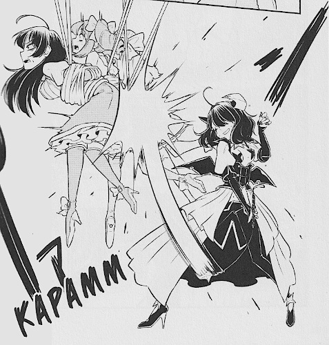 ![]() © 2019 Akihiro Ononaka MangaMoonUtena Hiiragi ist eine normale Schülerin, die davon träumt ein Magical Girl zu werden. Das Vorbild sind die Très Magia, Magical Girls, die in ihrer Stadt das Böse der Gesellschaft Enormita besiegen. Da taucht neben ihr das seltsam aussehende, fliegende Katzenwesen Venalita auf und bietet ihr an, sich in ein Magical Girl zu verwandeln. Und ehe Utena es sich versieht, beginnt ihre Verwandlung. Doch leider entspricht ihr Gewand danach nicht dem hellen Kleid eines Magical Girls. Eher ist es das der verhassten Enormita. Und kaum ist die Verwandlung zu Ende, sind auch schon die drei Magical Girl von Très Magia zur Stelle und wollen sie bestrafen. Die Beteuerung, dass Utena nichts mit Enormita zu tun hat, nützt nichts, da eine Falle vermutet wird. Venalita gibt Utena den Full Star Dominator, die ultimative Peitsche der Unterwerfung. Als sie damit auf ein paar Pflanzen zielt, werden diese zu einem großen Monster. Diese fängt die drei Magical Girls ein. Da Utena nicht weiß, was sie machen soll, wendet sie sich an Venalita. Der empfiehlt ihr, doch auch mal Hand anzulegen. Utena fühlt sich wie im Traum, als sie damit beginnt Hintern zu versohlen. Und zu ihrer Überraschung bringt ihr das auch noch Spaß. Nach einer nächsten Attacke, die mit einem Sieg durch Kitzeln für Utena endet, beschließt sie, den örtlichen Tempel aufzusuchen. Dort bittet sie darum, sich nicht mehr zu verwandeln. Doch auf dem Rückweg entdeckt sie ein Hentai-Heft, dass Venalita dort deponiert hat. Als Utena sich das Heft, dass von BDSM handelt anschaut, verwandelt sie sich vor lauter Lust. Die Klassenkameradin Sayo, die hier als Miko arbeitet und eine der drei Magical Girls ist, verwandelt sich sofort und greift alleine an. Doch Utena schafft es, ihr eine Maske aufzusetzen. Danach streichelt sie Sayo am ganzen Körper, bis diese erschöpft aufgibt. Utena entkommt, bevor die anderen Magical Girls eintreffen. So bekommt sie aber auch nicht mit, dass Sayo diese Behandlung insgeheim gefallen hat. Der Manga erzählt von dem Kampf von Magical Girls gegen ihren Feind. Doch er zeigt die Seite des Feindes. Außerdem geht der Kampf in einer erotische Auseinandersetzung über. Utena ahnt nicht, dass Venalita mit ihr eigene Ziele verfolgt. Grafisch ist der Manga in Ordnung. Die Charaktere sind gut getroffen, aber auch etwas schräg gestaltet. Die Frisuren sind zwar teilweise aufwendig gestaltet, aber dennoch einfach gezeichnet. Aber mit ihnen können die verwandelten Schülerinnen leicht erkannt werden. Auch die Gesichter sind recht einfach gezeichnet, wobei die Emotionen nur übertrieben dargestellt werden. Im normalen Leben tragen die Charaktere Schuluniformen, die zwar detailliert gestaltet, aber nur einfach gezeichnet sind. Dieses gilt auch für die etwas plumpen Uniformen der Très Magia. Utenas Uniform des Bösen ist aufwendiger und erotischer umgesetzt. Die Mädchen werden nie nackt gezeigt. Die erotischen Handlungen untereinander werden auch eher nur angedeutet. Dennoch sind sie klar zu erkennen. Venalita und seine Kollegen und die herbei gezauberten Ungeheuer wie Skelettwesen oder Pflanzenmonster sind sauber und ordentlich, aber auch etwas detailarm gestaltet. Gegenstände wie Waffen oder Fesseln sind auch einfach, aber gut erkennbar umgesetzt. Dieses gilt auch für die wenigen Hintergründe. Die Serie kann man bereits über die Homepage des Verlags beziehen. In den regulären Handel soll sie allerdings erst im Januar kommen. Die Limited Edition bleibt aber nur über den Webshop erhältlich. |