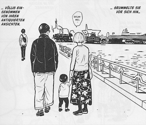 © 2023 Minetaro Mochizuki ReproduktMochitaro Minezuki ist ein mittelmäßiger Mangaka, der auf der Suche nach einem Thema für seinen nächsten Manga ist. Die Empfehlung seiner Frau, aufzuschreiben, woran er denkt, wenn er an seinem Schreibtisch sitzt, bringt ihn nicht weiter. Als nächstes sinniert Mochitaro darüber, dass ihm seine Brille nicht steht. Er hat seine Modelle nur gekauft, weil bekannte Mangaka sie ebenfalls getragen haben. Durch einen Blick in den Spiegel kommt er zu seinem Haar. Seine Frau schneidet ihm und seinem Sohn immer einen Undercut. In einem weiteres Kapitel geht es um seinen Moterradhelm. Mit ihm hat er früher seine Motorradtouren durch das Land gemacht. Aber nun liegt der helm seit Jahren auf einem Regal und er spaziert lieber durch die Stadt. Als nächstes schaut er seiner Frau zu, wie sie Smoothies macht. Der schmeckt super, aber er kann sich ihr Rezept nicht merken. Der Manga handelt von einem Mangaka, der auf der Suche nach einem Thema für seinen nächsten Manga ist. Sein letzter Manga war nur bei einigen Fans beliebt und gilt als gefloppt. So schaut er sich in seiner Umgebung um, wird aber nicht inspiriert. So wird gezeigt, wie schwierig es für Mangakas sein kann, ein Thema für ihre Manga zu finden. Aber es wird auch durch die Spaziergänge dessen Heimatstadt Yokohama vorgestellt. Grafisch ist der Manga in Ordnung. Die Charaktere sind sauber und wiedererkennbar gezeichnet. Die Frisuren sind detalliert gestaltet und auch die Gesichter sehen unterschiedlich aus. Diese sind allerdings etwas einfach dargestellt, so dass sie nur wenig Emotionen zeigen. Wobei die Charaktere auch oft nur von hinten gezeigt werden. Als Kleidung ist einfache Kleidung wie Pullover und Jacken getragen, die aber trotz einfacher Farben durch die Falten gut zu den Charaktere passen. Die Gegenstände wie Stifte, Bücher oder andere Haushaltsgegenstände sind sauber und detailreich gezeichnet. Auch die Hintergründe sind detailliert gestaltet, konzentrieren sich allerdings nur auf das Wesentliche. |