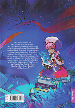 © 2024 XGreen AltraverseEyra ist eine Studentin an der Akademie von Mythcrest. Ihre Spezialität ist Waffenmagie. Aber Mythcrest ist ein friedlicher Ort, in dem nicht viel passiert. Heute Abend feiert die Stadt ein Fest. Eyra trägt zusammen mit ihren Freundinnen ein Stück über die Götter vor, als der Himmel plötzlich aufbricht. Ehe die Festbewohner es sich versehen, bricht ein Drache aus einem Portal hervor. Eyra versucht Ruhe zu bewahren. Sie weist ihre Mitschüler an, die Bewohner der Stadt in der Akademie in Sicherheit zu bringen. Doch bevor die meisten Bewohner reagieren können, stößt der Drache ein Blitzatem aus, der viele Menschen tötet. Eyra greift daraufhin den Drachen an, ist sich aber unsicher, welchen Zauberspruch sie benutzen soll. Erst ein ihr unbekannter junger Mann weist sie ruhig auf einen Spruch hin, mit dem sie den Drachen schließlich erledigen kann. Durch die Attacke sind viele Tote zu beklagen, auch Lehrer und Schüler der Akademie. Doch Eyras Freunde scheinen alle überlebt zu haben. Noch während die versuchen, den Verletzen zu helfen und zu überlegen, was sie mit den vielen Toten machen können, nimmt die Lehrerin Doluney Eyra beiseite. Denn sie hat die erschreckende Entdeckung gemacht, dass die ganze Stadt in einer magischen Sphäre gefangen ist, so dass die Bewohner die Stadt anscheinend nicht verlassen können. Der junge Mann, Damien, berichtet von einer anderen Stadt, die ebenfalls eingeschlossen worden war, bis sie zu Grunde ging. Aber was genau passiert ist, kann er nicht sagen, da derjenige, der darüber berichtet hat, betrunken war. So hat er es als Spinnereien abgetan. Doluney will darauf zusammen mit Eyra in der Bibliothek Nachforschungen anstellen. Damien will helfen, aber dass lässt Doluney nicht zu. Erst als sich Eyras Schwester Lea einmischt, darf auch er in die heiligen Hallen der Bibliothek. Ihre Nachforschungen ergeben, dass von nun an anscheinend jede Woche ein Monster erscheint. Und tatsächlich taucht ein Qilin auf. Da Eyra und Damien vorbereitet sind, ist der Kampf schnell vorbei. Dennoch wurde Damien schwer verletzt. Doch Doluney kann ihm helfen. Schlimmer ist, dass in der Stadt trotz der Bedrängnis eine Mordserie ausgebrochen ist. In dem Comic geht es um eine Stadt, die in der Falle sitzt. Glücklicherweise scheint es genug Lebensmittel zu geben. Aber das wöchentliche Monster und die Mordserie setzen den Bewohnern zu. Eyra muss zusehen, dass sie hinter das Geheimnis kommt, um beides zu beenden. Doch das ist am Ende mächtiger und schrecklicher, als sie es sich je hätte ausdenken können. Grafisch ist der Manga durchwachsen. Die Charaktere werden sauber und abwechslungsreich, aber auch etwas schräg dargestellt. Die Frisuren sind unterschiedlich und üppig und auch die Gesichter sind abwechslungsreich gezeichnet. Allerdings werden die Emotionen leicht übertrieben. Als Kleidung werden Kleider und Roben getragen, die detailliert und unterschiedlich dargestellt werden. Aber auch wenn sie üppig und mit mit Falten und Schattierungen ordentlich gezeichnet sind, wirken sie am Ende etwas steif. Die Gegenstände, Waffen, Ketten, Blumen oder Lebensmittel sind gut umgesetzt. Die Monster wirken wie große überdimensionierte Tiere oder Fabelwesen. Wenn die Tiere eine Mähne haben, so ist diese sehr üppig gezeichnet. Magie wird durch kleine Strudel dargestellt, wobei sie bei Eyras Waffenmagie nicht sichtbar ist, da sie nur den Kampf unterstützt. Das Ergebnis der Kämpfe ist aber auf beiden Seiten ziemlich blutig. Richtig blutende Wunden oder abgeschlagene Körperteile sind allerdings nur kurz zu sehen. Die Hintergründe sind sauber und detailreich gestaltet. Etwas gewöhnungsbedürftig ist, dass die Leserichtung nicht immer dem gewohnten Schema folgt. Außerdem sind manchmal die Zwischenräume zwischen den Panels mir Mustern gefüllt, bei denen man nicht weiß, wo die eigentlichen Bilder anfangen. |