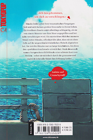 © 2021 Sai Naekawa TokyopopEs ist Sommer, aber die Schülerin Hinako kann sich nicht so darüber freuen. Denn sie hatte in der Vergangenheit traumatische Erfahrungen im Sommer gemacht. Aber dennoch ist Hinako überrascht, als sie plötzlich von einem fremden Mädchen davor gewarnt wird, sich dem Meer zu nähern. Dabei ist es doch durch ein hohes Geländer abgesichert. In der Schule macht sich Hinakos beste Freundin Miko Yashiro sich um sie Sorgen. Denn Hinako passieren ständig kleiner Missgeschicke. So würde Miko Hinako auch gerne nach der Schule nach Hause begleiten. Aber weil sie sich morgens verspätet hat, wollen die Lehrer Tanako und Yamashita sie sprechen. Hinako verspricht, keinen Unsinn anstellen zu wollen und in der Schule auf sie zu warten. Doch weil sich Hinako langweilt, geht sie zum Meer vor der Schule. Doch plötzlich wird sie von Haaren geschnappt und ins Meer gezogen. Ein Yokai aus dem Meer hat sie angegriffen und will sie fressen. Da taucht auf einmal das Mädchen vom Morgen auf und rettet sie. Der Yokai verschwindet, aber er nennt das Mädchen eine Meerjungfrau. Aber auch sie meint, dass Hinako ihre Beute ist und sie fressen will. Als der Yokai nicht locker lässt, greift das Mädchen ihn an. Nach einem kurzen, aber blutigen Kampf springt es aus dem Meer von Hinako. Noch blutig erklärt das Mädchen der verblüfften Hinako, dass sie Shiori Ohmi heißt. Aber sie ist eine Meerjungfrau und will eines Tages das verführerisch süße Fleisch von ihr essen. Aber bis dahin will sie Hinako vor den Monstern beschützen, die hinter ihr her sind. Hinako nimmt es aber hin, dass sie getötet werden soll. Sie hofft sogar, dass Shiori sie eines Tages erlösen wird. Damit sie Hinako besser überwachen kann, taucht Shiori am nächsten Tag in ihrer Klasse heraus. Der Manga handelt von der Beziehung zwischen einer Schülerin und einem weiblichen Yokai. Damit Shiori Hinako vor anderen Yokai beschützen kann, hängt sie sich so eng an sie heran, dass sie Miko geradezu verdrängt. Grafisch ist der Manga in Ordnung. Die Charaktere sind ordentlich und gut gezeichnet. Die Frisuren und Gesichter sind detailliert gestaltet, wobei sich die Gesichter ähneln. Die Emotionen sind dagegen einfach dargestellt. Die Schuluniformen sind detailliert umgesetzt, aber es wird auch andere Kleidung getragen. Durch die Schattierungen und wehenden Stoffe sieht die Kleidung lebendig aus. Die Yokai sind meistens eher einfach, aber sehr unterschiedlich dargestellt. Die Kämpfe gegen sie sind sehr blutig. Die Gegenstände sind einfach, aber erkennbar gestaltet. Die Hintergründe sind dagegen sauber und detailreich gezeichnet. |
