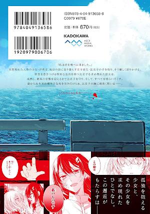 Inhalt vom Verlag: Hinako, die alleine in einer kleinen Küstenstadt lebt, wird tagtäglich von ihrer traumatischen Vergangenheit geplagt und sieht keinen großen Sinn mehr darin, ihren Schulalltag zu bewältigen. Eines Tages ändert sich ihr tristes Dasein allerdings schlagartig: Als sie von einem Monster aus dem Meer angegriffen und beinahe verschlungen wird, eilt ihr ein mysteriöses Mädchen namens Shiori zu Hilfe. Hinakos Retterin entpuppt sich als Meerjungfrau und offenbart, dass sie zwar ebenfalls auf Hinakos ungewöhnlich köstliches Fleisch aus ist, sie aber vor weiteren Gefahren beschützen möchte, bis sie noch schmackhafter geworden ist. Dank dieses seltsamen Versprechens fällt Hinako eine schwere Last vom Herzen, sehnt sie sich doch durch das grausame und zugleich liebevolle Monster ihre Erlösung herbei. (© Tokyopop) |