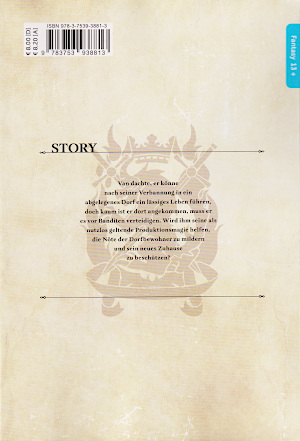 © 2022 Maro Aoiro / Kururi Sou Akaike AltraverseDer zweijährige Van Nei ist der Sohn des Marktgrafen Fertio. Auf einmal hat er die Erinnerungen an das Leben eines 30jährigen überarbeiteten Angestellten in Tokio, was ihn zu dem Schluss kommen lässt, dass er hier wiedergeboren worden ist. Dabei hat der Angestellte immer davon geträumt, aus dem hektischen Alltag der Großstadt zurück zu dem ruhigen Leben auf dem Land zu kommen. Hier in dieser Welt kennt man diese Hektik nicht. Sein Vater Jalpa Bull Ati organisiert für Vans Brüder Murica Elago, Jard Gai, Sesto El und ihn allerdings den Unterricht. Und für Vans ältere Brüder bedeutet das hauptsächlich kämpfen. Neben dem Schwertkampf lernen sie auch Magie, wobei die Feuermagie in der Familie sehr stark ist. Aber Murica beherrscht die Windmagie, die wie alle Elementarmagie angesehen ist. Daneben wird noch die Heilmagie anerkannt. Wer aber nur eine andere Magie beherrscht, wird verachtet. Dieses erfährt Van nach und nach von seinem Dienstmädchen Till und ihren Kollegien. Als der Oberbutler Meister Espada aber davon erfährt, nimmt er Van unter seine Fittiche und bringt ihm alles Wissenswerte bei. Allerdings ist diese Lehrzeit sehr hart. Einige Zeit später muss Van das Kämpfen lernen. Durch sein anderes älteres Ich und dem Wissen um Judo und Karate fällt es ihm leicht, die anderen Kinder zu besiegen. Dann wird allerdings der Vizekommandant des Ritterordens, Dee, sein Lehrer und die leichten Kämpfe sind vorbei. Doch mit acht Jahren kommt der Augenblick, in dem entschieden wird, welche Magie Van richtig beherrschen wird. Zum Entsetzen seines Vaters ist es die Produktionsmagie. Diese wird als eine der niedrigsten Formen der Magie angesehen, da sie so viel Kraft verbraucht, dass man kaum etwas großes Erschaffen kann. Und die erschaffenen Dinge können eigentlich auch normale Handwerker herstellen. So will Vans Vater ihn gleich an Ort und Stelle töten. Allerdings schreitet Murica ein. Er weißt auf ein kleines Dorf am Rande des Herrschaftsgebiet hin. Wenn Van dort Stadthalter für die Fertio wird, könnten dort auch Soldaten stationiert werden, ohne dass der nahe Nachbar etwas dagegen haben kann. In dem Manga geht es darum, dass ein achtjähriger Junge mit dem Wissen eines modernen 30jährigen Angestellten und der Hilfe der verbotenen Magie der Produktion ein kleines Dorf am Randes des Reiches erblühen lässt. Ein Teil des Witzes wird aber genommen, da der Junge schon früh als absolutes Wunderkind dargestellt wird, dem alles gelingt, was es anpackt. Grafisch ist der Manga aber auch sehr gut. Die Charaktere sind etwas stereotypisch für ihre Rollen, aber sauber und detailliert gestaltet. Die Frisuren sind detailreich und unterschiedlich gezeichnet. Dadurch stört es auch nicht, dass sich die Gesichter sehr ähneln. Die Gefühle sind gut umgesetzt, auch wenn sie oft übertrieben dargestellt werden. Die Charaktere tragen Kleidung, die zu ihren Rollen passen. Krieger und Abenteurer tragen Rüstungen, Butler und Dienstmädchen ihre Uniformen. Die Adligen tragen entweder die ausgeschmückten Uniformen der Kommandanten oder einfachere, aber etwas pompöse Kleidung. Die Gegenstände wie Waffen sind aber eher einfach gestaltet. Die Kämpfe mit ihnen sind meistens kurz, da Van die Taktiken aus dem Off erklärt. Die Hintergründe sind sauber und detailreich gezeichnet. |