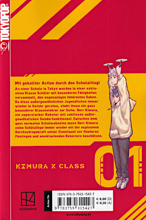 Inhalt vom Verlag: An einer exklusiven Schule in Tokyo werden Schüler mit besonderen Fähigkeiten versammelt, den sogenannten Innate Gifts. Da diese außergewöhnlichen Jugendlichen immer wieder in Gefahr geraten, steht ihnen ein ganz besonderer Klassenlehrer zur Seite: Herr Kimura, der stärkste Roboter der Welt! Zwischen dem ganz normalen Schulwahnsinn mit Baseballwettbewerben und Kochprüfungen muss Herr Kimura seine Schützlinge immer wieder mit der explosiven Durchschlagskraft seiner Eisenfaust vor finsteren Fieslingen und amoklaufenden Robotern beschützen. (© Tokyopop) |