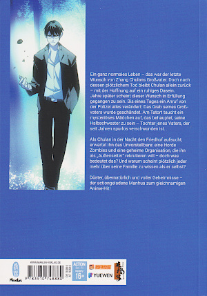 ![]() © 2023 Er Mi / Dong Man Tang ManlinDer Student Zhang Chulan wird von der Polizei informiert, dass jemand das Grab seines Großvaters Xilin geschändet hat. Alle Gräber des Friedhofs sind verwüstet, aber Xilins Leiche fehlt. Die zweite böse Überraschung für Chulan, ist, dass an dem Grab das etwas seltsame Mädchen Namens Baobao aufgetaucht ist, die behauptet, seine Halbschwester zu sein. Das ist möglich, denn Chulans Vater Yude ist vor Jahren verschwunden und hat ihn einfach bei seinem Großvater gelassen. Als Chulan in ihrer Herberge nach ihr sehen will, ist sie allerdings verschwunden. Aber er vermutet, dass sie an dem Friedhof sein könnte. Tatsächlich findet Chulan Baobao dort. Allerdings ist sie gerade damit beschäftigt, ein Grab zu graben. Als Chulan fliehen will, haut sie ihn mit einem Spaten KO. Chulan kommt aber rechtzeitig genug wieder zu sich, um zu sehen, wie Baobao einer Leiche ein Messer in die Kehle rammt. Als sie bemerkt, dass er wach ist, will sie ihn in dem offenen Grab entsorgen. Selbst der Hinweis, dass er ja ihr Bruder ist, hilft nicht, da der Ausweis gefälscht ist. So buddelt Baobao Chulan halb ein, als sie unterbrochen wird. Nachdem sich Chulan aus dem Grab befreit hat, sieht er, dass sie gegen Untote kämpft, die sich aus den Gräbern des Friedhofs erhoben haben. Als Baobao sieht, dass er sich aus dem Grab befreit hat, macht sie sich aus dem Staub und lässt ihn mit ein paar Untoten zurück. Am nächsten Tag setzt sich Baobao in der Uni direkt neben Chulan. Der erschrickt sich zunächst, will aber dann versuchen, seine Ruhe wiederzubekommen. Als er sie fragt, wer sie eigentlich ist, erzählt sie ihm allerdings nur eine ausgedachte Scheinidentität. Aber dafür will sie wissen, wie er den Zombies entkommen ist. Ihm gelang das, weil ihm sein Großvater Kung-Fu beigebracht hat. Mit einer leuchtenden Aura soll er allen Feinden kampflos entkommen können. In dem Manhwa geht es um Zhang Chulan, auch wenn der davon gar nichts weiß. Denn sein Großvater Xilin hat in ihm Yang-Energie gesammelt. Aber er hat ihm auch das Zinnober-Siegel verpasst, weswegen er kein Sex haben kann. Aber so kämpfen verschiedene Gruppen und Einzelpersonen, die alle über mystische Kräfte verfügen, um seine Kraft. Grafisch ist der Manhwa in Ordnung.Zwar sind einige Charaktere etwas schräg gezeichnet, aber das passt gut zu den Rollen, die sie darstellen sollen. Ansonsten sind die Frisuren detailreich und individuell gestaltet. Die Gesichter sind teilweise sehr einfach, aber teilweise auch sehr fein dargestellt. Allerdings zeigen sie zu oft übergroße Augen. Dennoch werden die Emotionen sauber umgesetzt, auch wenn sie meistens mit dem ganzen Gesicht gezeigt werden. Die Kleidung ist unterschiedlich und gut getroffen. Meistens werden Sweater, Shirts oder Anzüge getragen. Diese sind abwechslungsreich gefärbt. Die Konturen durch Falten und Schattierungen sind allerdings nur einfacher gelungen. Die Toten und Untoten haben neben faltiger Haut auch meistens eine dunkelgrüne Gesichtsfarbe, die sie oft durch Bandagen oder Kappen verbergen. Bei den Kämpfen ist seltener die Action zu sehen. Vielmehr werden die Auswirkungen wie fortgeschleuderte Körper gezeigt. Diese werden durch Speedlines aber rasant dargestellt. Mystische Augenblicke oder der Einsatz von Magie wird durch die Beleuchtung gezeigt. Wobei Magie hauptsächlich durch Licht und Feuer dargestellt wird. Die Hintergründe sind sauber und detailliert gezeichnet. |