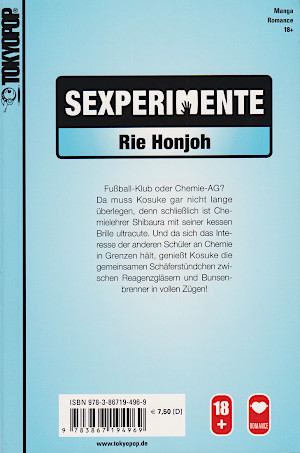 ![]() © 2003 Rie Honjoh TokyopopKosuke ist der einzige Schüler in der Chemie AG der Schule. Es sind zwar fünf Schüler angemeldet, aber die anderen kommen nicht zu den AG-Zeiten. Kosuke macht das nicht viel aus, kann er so mit dem Lehrer Shiba den Unterricht alleine machen. Sein Bruder Shuri misstraut Shiba und überwacht die beiden, sobald sie alleine im Chemielabor sind. Doch eines Tages lädt Shiba Kosuke zu einer Körperausstellung ein. Dort muss Kosuke überrascht feststellen, dass er vielleicht in Shiba verliebt ist. Kosuke kann es nicht glauben. Aber als er erfährt, dass die Chemie AG mangels Teilnehmer geschlossen wird, kann er es nicht glauben. Er läuft zur Schule, wo er Shiba bei den Aufräumarbeiten findet. Als Kosuke Shiba gesteht, dass er ihn vermissen wird, verführt dieser ihn. Die Chemie AG wird trotzdem geschlossen, statt dessen gründen Kosuke und Shiba den Club der Chemieliebhaber. Shuri versucht den beiden nachzuspüren und findet das Verhältnis der beiden heraus. Aber bevor er sich darüber klar wird, wird er seinerseits von seinem Klassenkameraden Takaya verführt. So entwickelt sich die Story des Mangas mehr und mehr in Richtung Erotik. Hübsche Männer verführen junge Schüler. Für diese sind es homoerotische Experimente. Grafisch ist der Manga in Ordnung. Das Charakterdesign ist ein wenig sparsam, aber bis auf Shuri recht gut gelungen. Speziell Kosukes Katzengesicht ist niedlich. Die Hintergründe sind recht technisch und von dem Einsatz der Rasterfolie geprägt. Wegen den expliziten Inhalten ist der Manga eher für ältere Leserinnen. |