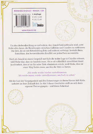 © 2021 Hinoki Kino / Touko Amekawa DokicoPrinz Dietrich hat die Verlobung mit Rishe Irmgard Weltzner aufgelöst. Schon wieder. Denn weil Rishe bisher sechs mal mit 20 Jahren starb und sich dann wieder in ihrem Körper wiedergefunden hat, kennt sie diese Zeremonie bereits. In diesen Leben war sie Abenteurerin, Medizinerin und sogar Soldat. Als sie dieses Mal von der Zeremonie flieht, läuft Rishe in die Arme von Kronprinz Arnold Hein aus dem Kaiserstaat Gankheim. Weil sie es aus ihrem alten Leben gewohnt ist, nennt sie ihn allerdings aus Versehen Kaiser. Das macht ihn aber neugierig auf sie. Durch den Zusammenstoß hat Rishe aber Zeit für ihre Flucht verloren. So kann Prinz Dietrich sie vor ihrer Residenz stellen. Mit dabei ist Marie, die seine Geliebte und der eigentliche Grund für die Auflösung der Verlobung ist. Beide treiben Rishe so zur Weißglut, dass sie sie einfach stehen lassen will. Doch das will der Prinz nicht zulassen und ruft seine Wachen. Da geht allerdings auf einmal Arnold dazwischen, der als exzellenter Kämpfer bekannt ist. Und bevor Rishe es sich versieht, kniet er vor ihr nieder und bittet sie, seine Frau zu werden. Zunächst lehnt Rishe den Antrag ab. Aber selbst der König kniet vor ihr und bittet sie darum. Den Ausschlag geben allerdings Rishes Erinnerungen daran, was der Kaiserstaat mit dem Königreich machen könnte, wenn sie diese Bitte ablehnt. So stimmt sie schließlich, etwas widerstrebend und mit Bedingungen, zu. Denn sie kennt Arnold nur als tyrannischen Kaiser, der sie als Soldat mit seinem eigenen Schwert durchbohrt hat. Der Manga ist eine humoristische Liebesgeschichte zwischen einem Kronprinzen und einer Frau, die durch ihre früheren Leben viel Wissen angesammelt hat. Allerdings kennt sie auch die Zukunft ihres Gatten und ist erstaunt, dass er sich nun so stark von dem ihres vergangenem Leben unterscheidet. Grafisch ist der Manga ordentlich gestaltet. Die Charaktere sind sauber und auch detailreich gezeichnet. Die Frisuren sind detailliert umgesetzt. Die Gesichter sind allerdings etwas einfach gezeichnet und ähneln sich etwas. Dennoch sind die Emotionen fein gestaltet und gelungen. Die Kleidung, die Kleider der Frauen und die Uniformen und Anzüge der Männer, sind sauber und detailliert umgesetzt. Sie sind mit Schleifen, Borten, Bändern und Schnallen ausgeschmückt. Allerdings fehlt etwas die Schattierungen, um die Tiefe zu erzeugen. Auch andere Gegenstände sind ordentlich gestaltet, allenfalls die Waffen sind eher einfach umgesetzt. Die Hintergründe sind sauber und detailliert gezeichnet. |