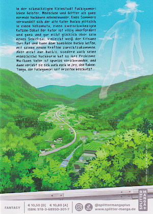 © 2018 noho Splitter Manga+In dem kleinen japanischen Ort Uchigamori tief in den Bergen leben heute noch Yokai genannte „Ayashi“ gemeinsam mit den Menschen. Die Ayashi sind vor langer Zeit von den Göttern geschaffen oder von Menschen geboren worden. In locker zusammenhängenden Kurzgeschichten werden die Bewohner des Dorfes und ihre Erlebnisse vorgestellt. So trifft die junge Mu auf dem Nachhauseweg vom Schwimmen auf den Raben-Tengu Jiro. Der kommt gerade vom Einkaufen und kann Mu ein Eis schenken, dass er dort gewonnen hat. Außerdem trocknet er nebenbei mit seinen Fähigkeiten Mus Haare. Ein paar Tage später herrscht große Aufregung, die die drei Schüler Takumi, Ryo und Mu zu dem Haus treibt, in dem der alte Kater Buchio lebt. Denn der verwandelt sich gerade in einen Nekotama, eine zweischwänzige Katze. Aber zur Überraschung aller kann er dadurch auch sprechen. Allerdings beklagt sich Buchio darüber, dass er nun bekannt ist. Außerdem gefällt ihm sein Name nicht. Aber ändern will er ihn dennoch nicht. Doch als Yokai muss Buchio erst einmal Bürokram wie zum Beispiel die Anmeldung an eine Krankenversicherung für Yokai erledigen. Auch um festzustellen, was er als Yokai tun soll, will er Jiro und dessen Onkel besuchen. Er ist dabei sehr schüchtern, was dem Onkel missfällt. Außerdem ist Buchio entsetzt, als er hört, dass er als Yokai quasi ein Jüngling ist. Denn Yokai leben lange und er hatte als Katze schon fast sein Lebensende erreicht. So muss Buchio auch lernen, was er als Yokai tun kann. Jiro bringt ihn zu einer Lehrerin, die ihm zeigen soll, wie er sich verwandelt. Sie ist für Buchio eine Überraschung, weil er bislang nicht wusste, dass sie eine Yokai ist. Der Manga erzählt von dem Leben in einem kleinen Dorf, in dem viele Mitbewohner Yokai sind. Auch in den Wäldern der Gegend sind voll von ihnen, wobei sie dort auch riesig oder gefährlich sein können. Ein Yokai hat wahrscheinlich auch Mus Vater getötet, der vor einiger Zeit verschwunden ist. Grafisch ist der Manga gelungen. Die Charaktere, sowohl die Menschen als auch die Yokai sind gut getroffen. Die Frisuren sind gelungen. Bei den Kindern sehen sich die Gesichter allerdings etwas ähnlich. Erwachsene, aber auch die Yokai sind dagegen individueller gestaltet. Auch wenn die Yokai teilweise Tierköpfe tragen, sind ihre Emotionen, wie auch die der Menschen, gut getroffen. Als Kleidung tragen die Menschen, aber auch die menschlichen Yokai einfache Freizeitkleidung, die gut zu den Körpern der Charaktere passt. Die Tiere, in die sich die Yokai verwandeln sind auch sauber und detailliert gezeichnet. Die Gegenstände und Hintergründe sind ebenfalls detailreich und sauber umgesetzt. |