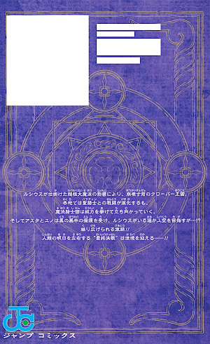 © 2015 Yuuki Tabata TokyopopDie beiden Waisen Asta und Yuno wurden als Babys gemeinsam vor der Kirche abgelegt. Seitdem betrachten sie sich als brüderliche Rivalen. Für Asta ist das besonders schwer. Denn in der Welt herrscht die Magie und seitdem die Ritter einfallende Dämonenhorden besiegt haben, gilt der König der Magier als Herrscher der Welt. Nur leider kann Asta keine Magie ausüben. Dennoch ist sein Ziel, König der Magier zu werden. So stählt er in der Zwischenzeit verbissen seinen Körper. Schließlich steht die Verleihung der Grimoire an. Jedes Kind soll eines bekommen und mit dessen Hilfe will Asta aufholen, was ihm bisher versagt worden ist. Doch leider bekommt ausgerechnet er keines. Und wie um ihn zu verhöhnen, bekommt Yuno sogar ein Seltenes mit einem Glückskleeblatt. Doch anscheinend bringt Yuno sein Grimoire Pech. Denn er wird von einem Banditen überfallen, der ihm das Grimoire rauben will. Doch der Bandit hat nicht mit Asta gerechnet, der seinem Bruder helfen will. Denn auch, wenn die Lage hoffnungslos scheint, gibt er nicht auf. Da erscheint, mitten im Kampf, plötzlich das Grimoire von Asta. Es ist vollkommen schwarz und enthält ein Schwert, mit dem er Antimagie zaubern kann. Mit dem schwarzen, fünfblättrigen Kleeblatt darauf ist es das Grimoire des Teufels. So ausgestattet gehen Asta und Yuno zu den Ritterorden in der Hauptstadt. Dabei legt sich Asta ausgerechnet mit Yami Sukehiro, dem Leiter des Ritterordens „Schwarzer Stier“ an. Diese düstere Truppe hat einen besonders gefährlichen Ruf. Auch bei der Eignungsprüfung für die Ritterorden versagt Asta. Nur das magische Duell gewinnt er, aber eher durch körperliche Kraft. So kommt es, dass nur Sukehiro sich für ihn und seinen unbändigen Willen interessiert. Yuno hingegen kann sich seinen Orden aussuchen und entscheidet sich für den führenden Orden „Goldene Morgendämmerung“ unter William Vanegance. Trotz allem merkt Asta schnell, dass der „Schwarzer Stier“ der richtige Orden für ihn ist. Hier gibt es viele schräge Typen, die aber alle sehr nett sind. Sein erster Auftrag führt ihn in eine Provinz, ähnlich seinem Heimatort. Zusammen mit dem Feuermagier Magna Swing und Noelle Silva, die Anfänger wie er, adliger Herkunft ist und mächtige Magie unkontrolliert zaubern kann, machen sie sich auf den Weg, ein Wildschwein zu vertreiben. Vor Ort angekommen müssen sie aber feststellen, dass gerade mehrere starke Magier dabei sind, die Dorfbewohner zu töten. Der Manga beschreibt in einer magischen Fantasiewelt den Weg des Underdogs zum Helden. Dabei hilft ihm die bunte Truppe der Gilde. Neben vielen magischen Kämpfen kommt so der Humor nicht zu kurz. Grafisch ist der Manga dabei recht ordentlich. Die vielen unterschiedlichen Charaktere sind gut getroffen, auch in ihrer Art und ihrem Gehabe. Allerdings sind sie etwas unsauber gezeichnet. Die Kämpfe sind dynamisch und abwechslungsreich dargestellt. Die Hintergründe sind detailliert und passen zu den Charakteren. |