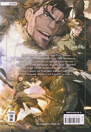 © 2016 Chika Toujou / Carlo Zen Egmont MangaDas Kaiserreich, dessen Armee Oberfeldwebel Tanya Degurechaff angehört, greift das Gebiet der Legedonier an und Tanya ist als Artillerieaufklärer mitten im Gefecht. Bis vor einiger Zeit war sie noch ein arroganter japanischer Angestellter, der sich durch eine strenge Personalpolitik bei seinem Chef einschmeicheln wollte. Doch einer der Männer, die er entlassen hat, stieß ihn einfach vor einen Zug. Nach seinem Tod stand er vor Gott, was er sich in seiner Arroganz nicht eingestehen wollte. So forderte er Gott mit dem Wissen der Wissenschaft heraus, mit dem Ergebnis, dass er nun das Gegenteil seiner bisherigen Welt durchleben sollte. So landete er als kleines Mädchen in einer Welt ohne moderne Wissenschaft, aber voller Krieg und Magie. Tanya wurde von ihren Eltern verstoßen und wuchs deshalb in einem Waisenhaus auf. Aber sie beherrscht die Magie. Und da der Angestellte immer noch das Bewusstsein und das Wissen seines alten Lebens behalten hat, beschloss er, in die Armee einzutreten. Auch wenn Tanya als Artillerieaufklärer an der vordersten Front das Feuer der Geschütze lenkt, freut sie sich. Denn nur so kann sie es als kleines Mädchen schaffen, schnell in der militärische Hierarchie aufzusteigen. Doch Tanya gerät in einen Hinterhalt. Aber mit dem Wissen, dass dieses eine göttliche Prüfung ist, die länger dauern soll, opfert sie sich selber und überlebt trotzdem. So wird Tanya zur jüngsten Heldin ihrer Nation. Der Manga handelt so von einem japanischen Angestellten, dem plötzlich die Chance gegeben wird, zu einer mächtigen und gefürchteten Persönlichkeit aufzusteigen. Mit dem Wissen, dass ihn Gott, bzw. Person X ihn während der Prüfung nicht sterben lässt, versucht er als kleines Mädchen Tanya sich in der Armee mit ihrer Hierarchie durchzusetzen und aufzusteigen. Dass Tanya auch noch gut die Magie beherrscht, hilft ihm dabei. Dabei ist er allerdings ein Spielball der Götter und dadurch auch ein Spielball ihrer Vorgesetzten. Der Unterschied zwischen den Erwartungen des Angestellten und dessen, was wirklich passiert, ist humorvoll dargestellt. Der Krieg selber ähnelt dem ersten Weltkrieg, wobei Tanya an der Seite der Deutschen kämpft. Das moderne Wissen, dass der Angestellte immer einstreut, wird mit kleinen Boxen erklärt. Grafisch ist der Manga sehr gut. Tanya ist als junges Mädchen gut dargestellt, auch wenn sie in Uniform älter aussieht. Auch die weitere Charaktere sind, entsprechend ihrer Rolle, gut besetzt. Die Götter sind die klassischen Götterrollen, wobei sehr viele Religionen vorkommen. Tanya zeigt meistens nur wenig Emotionen, aber wenn, dann geht sie aus sich heraus. Die Kleidung und die Waffen sind detailliert und relativ dicht an existierende Vorbilder gezeichnet. Die Kämpfe werden meistens kurz und etwas unübersichtlich dargestellt. Der Kampfverlauf wird eher durch Texte erklärt. Zerrissene Menschen sind aber eher selten zu sehen. Wie die Charaktere sind auch die Hintergründe genau und detailliert gezeichnet. Manga auf https://www.egmont-manga.de |