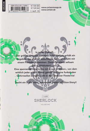 ![]() © 2017 Koutarou Takata / Arthur Conan Doyle Naomichi Io Carlsen VerlagIm London der Zukunft wird dem arbeitslosen John H. Watson ein Angebot gemacht, das für ihn sehr interessant klingt. Er muss nur mit einem Mann zusammen leben, der dafür die komplette Miete und Nebenkosten bezahlt. Da Watson chronisch pleite ist, will er den Mann zu mindestens kennen lernen. Als Watson aber erfährt, dass Sherlock ein Androide ist, will er aber nichts mehr mit ihm zu tun haben. Zumal der Grund ihres Zusammenlebens der ist, dass er der größte bekannte Versager sein soll. Doch dann wird Watson von einem Polizisten aufgegriffen. Er soll jemanden beraubt haben. Tatsächlich findet man bei ihm Diebesgut, unter anderem einen Datenstick. Als Sherlock ihn analysiert, findet er einen Plan für einen Raub. Es stellt sich heraus, dass der eigentliche Täter der Polizist ist. Sherlock kann ihn überwältigen. Aus Dank akzeptiert Watson das Angebot, dass sie zusammen leben. Gemeinsam gründen sie eine Detektei. Auch wenn sich die ersten gemeinsamen Fälle auf vermisste Haustiere beschränken, findet Sherlocks Erbauerin, Dr. Sherringford Emma Lestrade, Watsons Berichte über ihre Tätigkeiten interessant. Um Sherlock mehr zu fordern, fragt Emma bei ihrem Vater, dem Chief Inspector Gregory Lestrade an. Wenn auch etwas widerwillig und nur, weil sie seine Tochter ist, begibt sich der in die Baker Street 221B. Um Emma nicht zu blamieren, hat Lestrade einen einfachen Fall im Gepäck. So bekommt Sherlock schnell heraus, dass das Opfer, Enoch Drebber, eigentlich Selbstmord begangen hat. Doch kurz darauf gibt es einen ähnlichen Fall, der mit dem in Verbindung zu stehen scheint. Und auch Sherlocks Haushälterin Mrs. Hudson überlebt einen Selbstmordversuch nur knapp. In dem Manga werden die Abenteuer von Sherlock Holmes als Sciencefiction dargestellt. Sherlock ist ein Android, der Zusammenhänge blitzschnell begreift. Sein Gedächtnispalast stellt er mittels Holografie nach. Auch die Pfeife hat seinen Nutzen. Es sind auch alle wichtigen Personen vorhanden, wobei auch zwei weitere Charaktere eingeführt werden. Grafisch ist der Manga durchschnittlich. Zwar sehen die Charaktere unterschiedlich aus und sind auch detailliert gezeichnet, aber sie passen nicht so richtig zu den ursprünglichen Charakteren. Sie wirken einfach zu jung. Mit ihren detaillierten Gesichter zeigen sie, was sie denken. Als Kleidung tragen sie meistens einfache Anzüge und Trenchcoats. Nur die Frauen tragen andere Kleidung, wobei diese etwas unpassend erotisch wirken. Wie die Charaktere sind auch die Hintergründe sehr detailliert gezeichnet. |