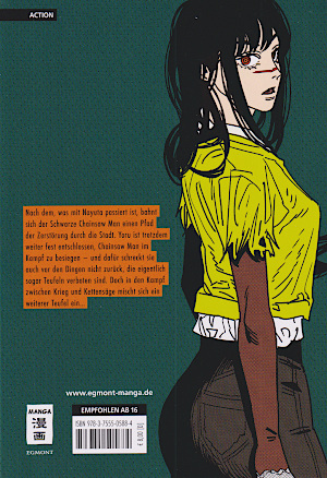 © 2019 Tatsuki Fujimoto Egmont MangaDer junge Denji hat von seinem Vater die Schulden bei der Yakuza geerbt. Nun ist er bitterarm, bis er die Schulden abbezahlt hat. Deswegen hat er auch schon Teile seines Körpers verkauft. Aber die Schulden sind so hoch, dass er sie wahrscheinlich bis an sein Lebensende abbezahlen muss. Seit kurzem bekämpft er aber Teufel. Diese monströsen Wesen ernähren sich von Menschenfleisch, wobei sie durch menschliches Blut auch heilen. Weil Denji so dem kleinen Dämon Pochita geholfen hat, hat er einen Pakt mit ihm. Pochita hilft Denji deswegen mit seiner Kettensäge, andere Dämonen zu töten. Aber auch wenn die Belohnung für Teufel hoch ist, bleibt kaum etwas von dem Geld für ihn übrig. Eines Tages hat sein Betreuer von der Yakuza einen weiteren Auftrag für ihn. Er soll einen Teufel in einer Scheune töten. Doch der Auftrag ist eine Falle. So werden Denji und Pochita erstochen und vom Teufel in Stücke gerissen. Denn die Yakuza hat einen Deal mit dem Teufel. Sie töten die Teufelsjäger und bekommen dafür vom Teufel übernatürliche Kräfte. Allerdings hat der Teufel sie auch versklavt und in willenlose Zombies verwandelt. Als Denji wieder zu sich kommt, hat sein Körper Pochita absorbiert. Als er dessen Kräfte aktiviert, verwandelt sich sein Kopf und seine Arme in Kettensägen. So schafft er es, die Yakuza-Zombies und den Teufel zu besiegen. Als alle tot sind, taucht die staatliche Teufelsjägerin Makima auf. Sie lässt Denji die Wahl, ob sie ihn töten oder als ihr Haustier versklaven soll. Denji entscheidet sich auch wegen dem versprochenen Essen für Letzteres, ohne zu wissen, worauf er sich einlässt. In dem Manga geht es um den Kampf gegen Teufelskräfte. Dabei geht es nicht nur um die reine Stärke, sondern auch um die Beeinflussung von Menschen. Jeder Mensch hat einen Traum, der von Teufeln korrumpiert werden kann. Wobei Denjis Traum nur ein normales Leben mit einem Frühstück mit Marmeladenbroten ist. Grafisch ist der Manga in Ordnung. Die Charaktere sind unterschiedlich, aber auch etwas grob gezeichnet. Die Menschen, die von Teufeln besessen sind, haben interessante Kopfformen. Bei Denji kommt hinzu, dass er sich entsprechend verwandeln kann. Nebencharaktere werden einfacher dargestellt. Die Kleidung ist abwechslungsreich gezeichnet und wird teilweise sehr körperbetont dargestellt. Auch die Dämonen sind sehr unterschiedlich dargestellt. Zum Teil ähneln sie Tieren, aber sie könnten auch Lovecraft's Cthulhu entsprungen sein. Die Kämpfe gegen sie und die versklavten Menschen sind schnell, aber auch sehr blutig. Man sieht keine Eingeweide, aber Blut und Körperteile spritzen herum. Die wenigen Hintergründe sind einfach, aber detailliert gezeichnet. Manga auf https://www.egmont-manga.de |