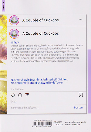 Erscheint ab 2021 bei Carlsen Verlag (Der Manga läuft noch) Edition "A Couple of Cuckoos - Manga Day 2023" ist abgeschlossen |