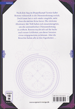 © 2020 Jeiichi Kaidou / Roku Hiraishi Hozumi Mitaka Egmont MangaIn der Welt sind die Monster besiegt worden und dadurch wurden die Helden kurzfristig arbeitslos. Allerdings wurden kurz darauf die Dungeons erfunden. Dort gab es magisch erschaffene Doppelgänger der Monster, gegen die die Helden kämpfen. Zuschauer können die Kämpfe auf Bildschirmen verfolgen. Der Schwarzmagier Remme ist bei seinem Kindheitsfreund, dem Flammenheld Phoenix zusammen mit dem Paladin Lark, der Waldläuferin Lily und dem Krieger Alvers in einer Gruppe. Wie üblich wird schlecht über ihn geredet, da Schwarzmagier die Gegner schwächen und dabei nur unmerkliche Gesten machen. So sieht es so aus, als würde er kaum etwas zu Kampf beitragen und einfach nur mit der Gruppe mitlaufen. Da die Gegner geschwächt werden, merken selbst die Kämpfer kaum etwas davon. So fordert Lark in der letzten Pause vor dem Endboss, dass Remme die Gruppe verlassen soll. Auch wenn sich Phoenix für ihn einsetzt, hat Remme genug von dem Mobbing gegen ihn und er verlässt die Gruppe. Leider sind Schwarzmagier nicht als Gruppenbegleitung gefragt, so dass Remme länger Arbeitslos ist, als er gehofft hatte. Dafür freundet er sich mit Cashew an, die schon als Kind einen kleinen Marktstand betreibt. Eines Tages wird Remme plötzlich von einer schönen Frau angesprochen. Sie ist wie Cashew eine Demi-Human, genauer die Vampirin Milla. Sie schwärmt in höchsten Tönen von seinen Fähigkeiten. Da sie seine Fähigkeiten durchschaut hat, merkt Remme, dass es nicht nur bloße Schmeicheleien sind. So sagt er auch zu, als sie ihn bittet, sie zu begleiten. Zu Remmes Überraschung führt ihn Milla in die Dämonenfestung. Dort wird er der Dämonenkönigin Lucy vorgestellt, die wie ein Kind aussieht. Sie bietet Remme an, ihr Stabschef zu werden und damit der zweitmächtigste Befehlshaber über die Dämonenarmee. In diesem Manga wird der Kampf Helden gegen Monster umgedreht. Im Kampf geht es zwar immer noch darum, dass Helden in die Festung der Monster eindringen. Aber dieses Mal sind die Monster, die sich verteidigen, die Guten. Während die menschlichen Helden als arrogant und egoistisch dargestellt werden. Grafisch ist der Manga in Ordnung. Die Charaktere sind ordentlich, aber teilweise auch etwas einfach gestaltet. Und ausgerechnet Remme ist eher detailarm gezeichnet. Andere Charaktere, besonderes Ältere, haben durch Falten und Bärte ausdrucksstärkere Gesichter. Und bei weiteren Charaktere wird die Einfachheit gut durch die Textur gemildert. Die Gefühle zeigen eine Große Spanne. Von einem feinen Lächeln bis zu einem Wutausbruch, der mit dem ganzen Körper ausgeführt wird, ist alles dabei. Als Schwarzmagier trägt Remme eine einfache schwarze Robe, auf der Falten nur angedeutet werden. Auch die normale Bevölkerung trägt nur einfache Kleidung, wobei bei helleren Stoffen die Falten besser zur Geltung kommen, mit denen sich die Kleidung an den Körper anpasst. Während die normalen Abenteurer nur eine Rüstung tragen, die zu ihrer Rolle passt, ist die Rüstung der Helden geradezu üppig detailreich gezeichnet. Auch die Kleidung der Frauen ist mit Rüschen und Bändern gut besetzt, wobei auch darauf geachtet wird, an den richtigen Stellen die nackte Haut zu zeigen. Gegenstände wie Cashews Obst und Gemüse oder die Waffen der Helden sind gut getroffen. Die Kämpfe sind schnell nach wenigen Schlägen vorbei. Die wenigen Hintergründe sind nicht besonders ausgeprägt, um die Charaktere in den Vordergrund zu stellen. Nur einige Splash-Panels sind detailreich gezeichnet. |