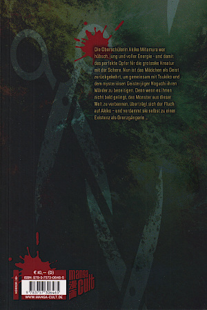 © 2022 Hakaru Takarai / Yuhei Suzuki Manga CultIn der Stadt geht ein Mörder herum, der junge Frauen mit einer riesigen, rostigen Schere tötet. Die Studentin Tsukiko Hiyama ist wegen der Erscheinung total verängstigt. Aber nicht, weil er ein unbekannter Mörder ist, sondern weil sie anscheinend die einzige Person ist, die den Totengeist Haikaisha sehen kann, wie er den jungen Frauen in der Bahn auflauert. So fährt Tsukiko mit ihrem Freund Shu Bando, als Haikaisha auftaucht und beginnt, sich für eine Schülerin zu interessieren. Aus Angst, seine Aufmerksamkeit zu erregen, macht sie sich ganz klein. Shu fällt das auch auf, aber er vermutet, dass diese Furcht ihm gilt. Als sich Tsukiko daraufhin zusammenreißt und ihm ihr Geheimnis anvertraut, glaubt er ihr nicht. Denn ihr Geheimnis ist, dass sie von klein auf Totengeister sehen kann. Weil Shu an eine Ausrede glaubt, trennt er sich von ihr, auch wenn ihn das sehr mitnimmt. Tsukiko erhält aber kurz darauf Besuch von Noguchi. Als sie ihn erschreckt vor der Tür stehen lässt, beschwört er den Geist von Akiko Mitamura. Tsukiko kennt sie, denn sie hat in der Bahn gesehen, wie sich Haikaisha für sie interessiert hat. Allerdings ist Akiko nicht an Rache interessiert, sondern sie will Haikaisha das Handwerk legen. Es stellt sich heraus, dass Noguchi zwar mit Toten reden, aber sie nicht sehen kann. Mit seiner Hilfe kann sich Tsukiko mit den Geistern unterhalten. Akiko will, dass Haikaisha schnell das Handwerk gelegt wird. Denn nur so kann sie verhindern, dass sie selbst zu einem mörderischen Totengeist wird. In der Zwischenzeit hat Shu aber auch ein paar seltsame Vorkommnisse in der Bahn. Das bringt ihn zu dem Schluss, dass Tsukiko recht gehabt hat. Er will nun auf eigene Faust hinter das Geheimnis von ihm kommen. Dach damit gerät er selber in das Blickfeld von Haikaisha, der sich bislang eher auf junge Frauen gestürzt hat. Der Manga ist eine Horrorgeschichte, in der ein unsichtbarer Totengeist Menschen mit einer riesigen Schere ermordet. Während Tsukiko Tote nur sehen kann, kann Noguchi nur mit ihnen reden. Aber es gibt noch andere Menschen, die Haikaisha sehen können. Da sie selber nicht bedroht sind, versuchen sie, ihn in Ruhe zu lassen. Auch wenn das bedeutet, dass er weiterhin morden kann. Grafisch ist der Manga gelungen. Die Charaktere sind ordentlich und detailliert gestaltet. Die Frisuren, Körper und Gesichter sind sauber und unterschiedlich gezeichnet. Die Gesichter werden allerdings etwas einfach dargestellt, können aber gut die Gefühl zeigen. Die Kleidung ist sauber gestaltet. Die Charaktere tragen unterschiedliche Freizeitkleidung, die gut zu ihren Rollen passt. Einige tragen am Abend Ausgehkleider, Tsukiko zu Hause auch mal Schlafkleidung und Bahnmitarbeiter ihre Uniformen. Die Kleidung wird detailliert dargestellt und mit Falten gut den Posen angepasst. Auch die Geister sind gut getroffen. Bezeichnend sind die leeren Augenhöhlen, da die Augen ausgestochen worden sind. Aber bei den Opfern sind auch andere Wunden zu sehen. Denn die Morde sind brutal und blutig und auch danach sind noch Details zu sehen. Die Gegenstände die Haikaishas Schere, Geschirr oder Handys sind sauber gezeichnet. Auch die Hintergründe sind detailreich dargestellt. |