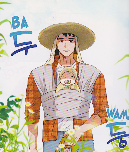 ![]() © 2024 Jeon Seokchang papertoonsHo Sung ist in das kleine koreanische Dorf Neoldongmae gezogen. Er war vorher beim amerikanischen Militär. Aber dann ist plötzlich seine Ex-Freundin aufgetaucht und hat ihm ihre gemeinsame Tochter in den Arm gedrückt. So wurde Ho plötzlich ein alleinerziehender Vater. Aus einer Laune heraus hat er beim Militär gekündigt, damit seine Tochter in seiner Heimat aufwachsen kann. Er konnte ein frisch renoviertes Haus kaufen, wobei der Makler das Landleben in den höchsten Tönen angepriesen hat. Anders als der Fahrer, der Ho und dessen Gepäck gefahren hat. Der warnte davor, dass die Dorfbewohner lieber unter sich bleiben und Neulinge ignorieren. Besonders der Dorfvorsteher soll sehr schwierig sein. Immerhin gibt er Ho noch den Tipp, wo der den Supermarkt finden kann. Aber als Ho dort ankommt, ist er geschlossen. Allerdings scheint er noch geöffnet zu haben, denn drinnen brennt noch Licht und an der Kasse hängt anscheinend die Jacke des Besitzers. Dann allerdings wird Ho ziemlich rüde angesprochen. Der Besitzer, Haebeom Kwon, ist zurück und hat vermutet, dass Ho einbrechen will. Das kann Ho allerdings nicht auf sich sitzen lassen und er gibt es Haebeom in gleicher Münze zurück. Es endet damit, dass Ho Hausverbot bekommt. Am nächsten Tag kommt Haebeom allerdings zu Ho. Er will sich für sein Benehmen entschuldigen und bringt auch ein Fahrrad mit. Er hat nämlich bemerkt, dass Ho kein Auto hat und das alte Fahrrad reicht für das Dorf. Aber als Haebeom erfährt, dass sich Ho noch nicht für einen Namen für seine Tochter entscheiden konnte, will er ihm Vorschläge machen. Aber bevor es soweit kommt, will Ho noch wissen, wo er den Dorfvorsteher finden kann. Da zu dem Haus ein Feld gehören soll, will er sich erkundigen, wo es liegt. Dabei stellt sich heraus, dass Haebeom auch der Dorfvorsteher ist. Das Feld entpuppt sich als sehr klein und auch noch voller Müll. Haebeom will Ho helfen, doch der lehnt ab. Immerhin musste er als Soldat auch schon Felder von Unkraut befreien. So macht es Haebeom sich mit dem Baby unter einem Baum gemütlich, während Ho arbeitet. Weil ihm warm wird, zieht Ho schließlich sein weites Hemd aus. Haebeom sieht dadurch zum ersten Mal Hos Körper und muss feststellen, dass er für ihn äußerst attraktiv wirkt. Der Manhwa erzählt von einem Mann, der in ein Dorf auf dem Land zieht, damit er dort alleine seine Tochter groß ziehen kann. Dort trifft er einen anderen, etwas mürrischen Mann. Aber über die Tochter kommen sie sich näher, bis sie feststellen, dass sie sich ineinander verlieben. Durch das Schicksal eines Dorfjungen geht es in dem Manhwa aber auch um das Erziehen von Waisenkindern. Grafisch ist er Manhwa eher durchschnittlich. Die Charaktere sind einfach gestaltet. Sie sind zwar unterschiedlich gezeichnet, aber ausgerechnet Ho und Haebeom ähneln sich sehr. Zwar sind die Frisuren eigentlich unterschiedlich, da Hos Haare mehr strubbelig sind, aber auf einigen Panels sehen sie gleicht aus. Auch die Gesichter der beiden ähneln sich. Bei Nebencharakteren, wie auch bei der Tochter, sind sie aber übertrieben und teilweise werden sie komplett nicht dargestellt. Die Emotionen sind teilweise in Ordnung, aber manchmal auch sehr übertrieben gezeichnet. Als Kleidung werden verschiedenfarbige Hemden getragen, die mit Falten teilweise gut den Posen und dem Körperbau angepasst sind. Aber dann werden sie auch wieder nur einfach und glatt dargestellt. Ho trägt außerdem oft eine eine aus langen Tüchern gewickelte Babytrage, in die er seine steckt, wenn er mal unterwegs ist. Bei der Feldarbeit und beim Duschen zeigen Ho und Haebeom ihren übertriebenen Körperbau. Zunächst kommt es allerdings noch nicht zum Sex. Gegenstände wie das Fläschchen und andere Babysachen sind eher einfach, aber gut erkennbar dargestellt. Das Fahrrad, Essen und andere für die Geschichte wichtige Dinge, sind besser und detaillierter gezeichnet. Sofern Hintergründe vorhanden sind, sind diese auch sauber und detailliert umgesetzt. |