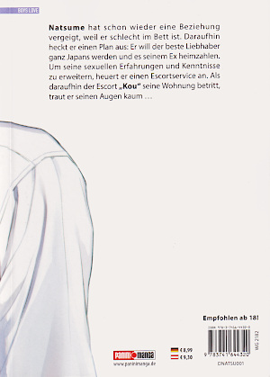 © 2022 Mamita Planet MangaNachdem der Ingenieur Natsume Shima von seinem Liebhaber mit der Begründung, dass er zu schlecht im Bett ist, sitzen gelassen wurde, fasst er einen Plan. Mit Hilfe von Escortservices will er lernen, wie er guten Sex machen kann, der besser als die besten Gay-Darsteller ist. Dann will er seinen Ex einladen und ihn schließlich sitzen lassen. Das wird seine Rache an ihm sein. Eigentlich will er seine Übungen unauffällig machen, doch der Plan schlägt schneller fehl, als gehofft. Denn Kou vom Escortservice, von dem er sich Hilfe erhofft, ist niemand anderes als seine Putzhilfe Sawaya. Natsume ist verwirrt und bittet Kou erst einmal in die Wohnung, damit dieses Gespräch nicht von den Nachbarn belauscht werden kann. Allerdings offenbart ihm Kou erst dort, dass mit dem Überschreiten der Hausschwelle der Kontrakt mit dem Escortservice geschlossen ist und ein Tausch des Mitarbeiters deswegen nicht mehr möglich ist. Während Natsume noch verzweifelt, entdeckt Kou seinen Plan für besseren Sex. Da bricht Natsume zusammen und gesteht Kou seine Nöte. Aber Kou gibt sich verständnisvoll. Er erklärt Natsume, dass er beim Sex nur verkrampft, weil er Angst hat davor hat, sich zu öffnen. Natsume muss nur lernen, angefasst zu werden. Und damit sich Natsume daran gewöhnt, beginnt Kou ihn zu küssen. Der Manga erzähl von einem Mann, der Angst vor dem Sex hat. Eigentlich will er sich an denen rächen, die ihn deswegen verlassen haben. Doch sein Lehrer zeigt ihm, dass Liebe die bessere Emotion ist. Grafisch ist der durchwachsen. Die Charaktere sind unterschiedlich und sauber gestaltet. Die Frisuren ähneln sich allerdings bis auf die Haarfarbe. Die Gesichter sind ähnlich und etwas einfach einfach gezeichnet. Die Emotionen sind aber gut dargestellt. Als Kleidung tragen die Charaktere nur Hemden, die einfach gestaltet sind. Nackt sind die Charakter etwas übertrieben gezeichnet. Die erotischen Szenen sind unzensiert, wobei die Charaktere kaum ganz nackt dargestellt sind. Die Gegenstände wie Handys oder Brillen sind sehr sauber gezeichnet. Es gibt nur wenig Hintergründe, die einfach dargestellt sind. |