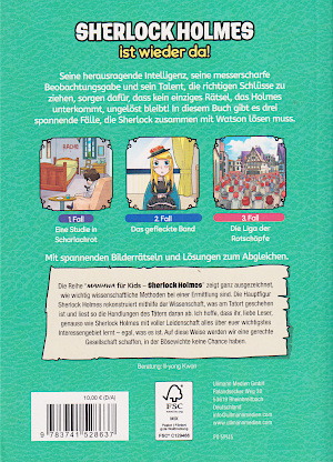 Inhalt vom Verlag: Sherlock Holmes ist wieder da! Seine herausragende Intelligenz, seine messerscharfe Beobachtungsgabe und sein Talent, die richtigen Schlüsse zu ziehen, sorgen dafür, dass kein einziges Rätsel, das Holmes unterkommt, ungelöst bleibt! Der beste Detektiv der Welt, Sherlock Holmes, und sein Freund Watson brillieren in einer Welt voller mysteriöser Fälle und wissenschaftlicher Untersuchungen! "Klassiker kindgerecht im koreanischen Manhwa-Stil dargestellt Spannende Rätsel regen Neugier und Fantasie an Durchgehend vierfarbig" (© Ullmann Medien) |