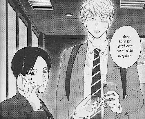 © 2023 Kana Kurihara B-LoveInoue und Shijima haben ein sexuelles Verhältnis, dass Shijima plötzlich beendet, nachdem sie Sex miteinander hatten. Inoue ist entsetzt, doch dann erinnert ihn Shijima daran, dass er schon als sie zusammengekommen sind, er ihre Beziehung nur drei Monate lang laufen lassen wollte. Dabei waren sie sofort zusammengekommen und hatten auch ausgiebig Sex. Inoue gefiel auch, dass Shijima auch gut küssen konnte.Doch das ist nun vorbei. Erschwerend kommt hinzu, dass Inoue und Shijima Kollegen in einer Firma sind. So laufen sie sich ständig über den Weg. Deswegen will Inoue herausfinden, warum Shijima seine Beziehungen nur drei Monate lang laufen lässt. Aber der schweigt beharrlich. Inoue weiß aber nicht, dass Shijima selber das Ende ihrer Beziehung bedauert. Der würde liebend gerne mal eine längere feste Beziehung haben und fand Inoue nicht so schlecht. Noch während er ihrer Beziehung ein wenig nachtrauert, erhält Shijima einen Anruf von Inoue. Shijima ist deswegen etwas verwirrt, da sie ja nicht mehr ein Paar sind. Doch Inoue hat den Anruf nur genutzt, um ihn abzulenken. Denn plötzlich steht er neben ihm und zieht ihn zu sich heran. Doch bevor es ernst wird, lässt Inoue Shijima wieder los. Er wollte ihm nur klar machen, was er durch das Ende der Beziehung verloren hat und meint, er würde ihn nicht aufgeben. Danach verschwindet Inoue und lässt den perplexen Shijima hinter sich zurück. Der weiß aber nicht, ob er enttäuscht sein soll, weil Inoue so schnell aufgegeben hat. Der Manga beschreibt die Beziehung zweier Angestellter, die einer von beiden wegen seiner Prinzipien vorschnell beendet hat. Während Inoue versucht, die Beziehung wieder aufzubauen, grübelt Shijima über seine Prinzipien und darüber, was falsch gelaufen ist. Grafisch ist der Manga in Ordnung. Die Charaktere sind sauber und klar gestaltet. Es gibt nur wenig Nebencharaktere, die aber auch gut getroffen sind. Allerdings wirkt Inoue mit seinen blonden Strubbelhaaren etwas einfach gezeichnet. Die Gesichter werden fein dargestellt und können auch gut ihre Gefühle zeigen. Als Angestellte tragen sie hauptsächlich ihre Anzüge, die gut dargestellt werden. Selbst auf Shijimas schwarzem Jackett sieht man die Falten, wenn er zum Beispiel die Arme beugt. Nackt sind die Körper sauber und nicht übertrieben gestaltet. Die erotischen Szenen werden unzensiert dargestellt. Die Gegenstände wie Handys, Biergläser oder Shijimas Zigaretten sind gut getroffen. Es gibt nur wenige Hintergründe, die allerdings einfacher gezeichnet sind. |