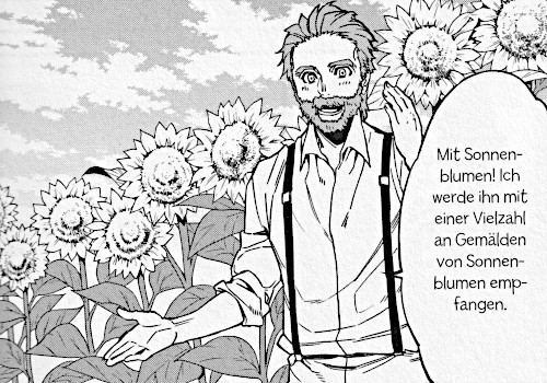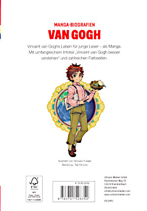 © 2016 Shouko Fukaki Ullmann MedienVincent van Gogh wurde am 30. März 1853 in dem Dorf Groot-Zundert in den Niederlanden geboren. Sein Vater Theodorus war der Pfarrer des Dorfes. Seine Mutter Anna Cornelia war sehr glücklich, denn sie hatte ein Jahr früher bereits eine Fehlgeburt erlitten. Im Laufe der nächsten Jahre bekam Vincent aber noch die Schwester Anna und den Bruder Theodorus, den alle nur Theo nannten, sowie Elisabeth („Lies“) und Willemien („Wil“). Da die Mutter mit Lies und dem jungen Wil beschäftigt war, übernahm Anne die Aufgabe, auf Vincent und Theo aufzupassen. Denn besonders Vincent liebte die Natur und zeichnete sie auch. Doch leider vergaß er darüber auch oft die Zeit. Vincent hatte leider die Eigenschaft, sehr aufbrausend zu sein. Er regte sich wegen Kleinigkeiten auf und war auch nicht zu beruhigen. Da er deshalb ständig mit den anderen Schülern stritt, wurde er von der Schule genommen und privat unterrichtet. Leider entdeckte er eines Tages das Grab seines verstorbenen Bruders. Da dieser den gleichen Namen wie er trug, nahm Vincent an, dass es sein Grab sei. Er lies sich auch kaum beruhigen und immer wenn er das Grab sah, brach es wieder aus ihm hervor. Damit er ruhiger werden sollte, wurde Vincent schließlich in das Internat von Jan Provily in Zevenbergen geschickt. Tatsächlich schloss Vincent diese Schule schließlich mit 13 Jahren ab und begann 1866 bei einem renommierten Künstler mit dem Kunstunterricht. Allerdings schmiss er diese Schule nach nur zwei Jahren. Auf Empfehlung seines Onkels Cent begann Vincent 1869 eine Lehre bei dem Kunsthändler Goupil in Den Haag, dem damaligen Parlamentssitz der Niederlanden. Er war fasziniert von den Gemälden, die er dort sah und verbrachte auch seine Freizeit in dem örtlichen Kunstmuseum Mauritshuis. Weil Vincent erfolgreich war, durfte er zu Filiale von Goupil nach London. Er war dort fasziniert von den Kriminalromanen und den Zeichnungen, die sie enthielten. Aber er lernte dort auch die Tochter seiner Vermieterin, Eugenie Loyer, kennen. Er verliebte sich sofort in die schöne Frau. Doch als er ihr seine Liebe gestand, erklärte sie ihm, dass sie bereits verlobt war. So zog sich Vincent mit gebrochenem Herzen in sein Zimmer zurück. Dort vertiefte er sich in das Studium der Bibel, von der er Lösungen erhoffte. Während er zunächst noch in der Kunstgalerie arbeitete, fehlte er immer öfter und wurde deswegen schließlich gefeuert. Nach einer kurzen Anstellung als Lehrer erklärt er seinem verblüfften Vater, dass er nun auch Pfarrer werden will. Mit diesem Hintergrund überredet in sein Bruder Theo schließlich dazu, Maler zu werden. In dem Manga wird der Lebenslauf von Vincent van Gogh beschrieben. Er besuchte einige Schulen und Ausbildungsstätten. Er hatte dadurch auch unterschiedliche Jobs. Doch immer kamen ihn seine Wutausbrüche und seine Unfähigkeit, mit Frauen umzugehen, in den Weg. So konnte er nie lange bleiben. Auch seine relativ kurze Karriere als Maler blieb davon nicht verschont. Vincent van Gogh starb am 29, Juli 1890 mit nur 37 Jahren. Seinen Ruhm verdankte er dabei auch der Arbeit seiner Schwägerin und seines Neffen. Grafisch ist der Manga gelungen. Die Charaktere sind sauber und abwechslungsreich gestaltet. Sie sehen den Bildern, die von ihnen gemalt worden sind, auch sehr ähnlich. Die Frisuren sind detailreich und abwechslungsreich gezeichnet, die Gesichter mit den großen Augen hingegen etwas einfach dargestellt und ähneln sich etwas. Die Gefühle werden dennoch gut ausgedrückt. Meistens werden Anzüge getragen, wobei die Frauen eher Blusen und lange Röcke tragen. Die Kleidung ist mit Falten ordentlich gestaltet. Die Gegenstände wie die Sonnenblumen, Essen oder Bücher sind sauber und detailliert gezeichnet. Die gezeigten Gemälde wurden als Fotos eingefügt. Auch die Hintergründe sind sauber und detailreich dargestellt. Der Band endet mit den Veränderungen die es in der Industrie, aber auch in der Kunst zu van Goghs Lebenszeiten gegeben hat. Deswegen werden auch die bedeutendsten Künstler und van Goghs Gemälde gezeigt. Es werden noch einmal wichtige Orte und Ereignisse dargestellt und am Ende einige Zitate van Goghs genannt. |