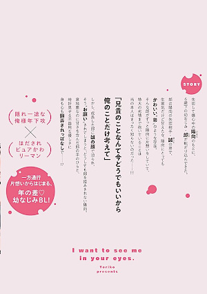 Inhalt vom Verlag: Nach einer schmerzhaften Trennung sucht Hinata Trost – und ausgerechnet Rou, sein sechs Jahre jüngerer Kindheitsfreund, zieht bei ihm ein. Rou ist nicht nur der Bruder von Hinatas Ex, sondern auch ein frecher, anhänglicher Begleiter, den Hinata wie einen kleinen Bruder sieht. Doch Rou hegt seit Jahren tiefe Gefühle für ihn – und eine Leidenschaft, die Hinata völlig ahnungslos lässt. Als Rou ihm schließlich mit einer Mischung aus Dominanz und Zärtlichkeit näherkommt, beginnt Hinatas Herz, sich zu verändern. (© Hayabusa) |