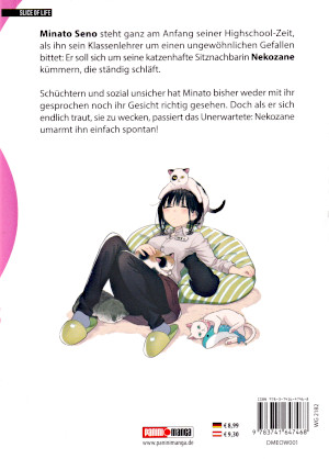 © 2024 Akinoko Planet MangaMinato Seno ist neu in der Oberstufe. Dort ist er Sitznachbar seiner Mitschülerin Nekozane, die die ganze Zeit im Unterricht schläft. Selbst der Lehrer bekommt sie nicht wach. So verliert der Lehrer eines Tages mit Nekozane die Geduld. Er bittet Minato deshalb, sich um Nekozane zu kümmern. Er soll sie ab und zu im Unterricht anstupsen und so wach halten. Bedauerlicherweise ist Minato sehr schüchtern, besonders was Mädchen angeht. So ruft er seinen einzigen Freund Takada an, den er von der Mittelstufe kennt. Doch der kennt Minato und macht sich deshalb leider eher über die ganze Situation lustig. Schweren Herzens geht Minato danach in den Klassenraum zurück, wo nur noch Nekozane an ihrem Pult schläft. Als Minato sie wecken will, weil die nächste Stunden in einem anderen Klassenraum statt findet, wacht sie plötzlich auf und umarmt ihn. Sie sagt noch „Shiratama Masamune“, bevor sie wieder einschläft. Von der Attacke überwältigt, geht Minato in das Lernzimmer, wo er die ganze Zeit über den Namen nachgrübelt. Als er nach der Schule wieder in das Klassenzimmer kommt, ist Nekozane aber verschwunden. Auf dem Nachhauseweg fällt Minato das Katzencafé Mew auf. Als er neugierig nachschaut, steht er plötzlich wieder vor Nekozane. Sie lädt ihn in das Café ein, weil sie dort arbeitet. Dort stellt sich heraus, dass der Name, den Nekozane genannt hat, der von ihren Katzen sind, die im Café leben. Da die Schüler nicht arbeiten dürfen, spendiert Nekozane Minato einen Kaffee, damit er nichts über ihren Job ausplaudert. Kurz darauf erhält Takada einen Anruf von Minato. Der fragt ihn, wie man sich mit einem Mädchen anfreunden kann. Aufgrund der Stimme und wie Minato fragt, vermutet er, dass sich Minato in Nekozane verliebt hat. In dem Manga geht es um zwei Außenseiter in der Klasse. In Kurzgeschichten werden ihre Aufeinandertreffen gezeigt, bei denen sie sich langsam ineinander verlieben. Dafür müssen sie aber ihre Ängste überarbeiten und ihr Verhalten ändern. Grafisch ist der Manga gelungen. Die Charakter sind sauber, aber auch etwas einfach gestaltet. Die Frisuren sind etwas einfach dargestellt. Die Gesichter sind teilweise einfach, aber dann auch wieder sehr fein gezeichnet. Als Schüler werden immer nur die Schuluniformen getragen. Auch wenn die Hosen und Jacken schwarz sind, sind sie dennoch mit Falten gut geformt. Die Katzen sind sauber und detailliert gezeichnet. Die Gegenstände wie Hefte oder andere Schulutensilien sind sauber gestaltet. Die Hintergründe sind sauber und voller Details dargestellt. |