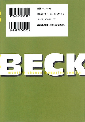 © 2000 Harold Sakuishi TokyopopYukio, genannt Koyuki, ist ein 14-jähriger mittelmäßiger Schüler. Er hat keine richtigen Freunde, außer vielleicht Tanabe, der allerdings nichts als Unsinn im Kopf hat. Und Koyuki ist derjenige, der darunter leiden muss. Sein Leben ändert sich, als er eines Tages einen seltsamen Hund namens Beck rettet. Als Yukio nämlich von seinem Schwarm Izumi eingeladen wird, trifft er auch das Herrchen von dem Hund, Ryusuke. Dieser hat kurz darauf die Gelegenheit, sich für Becks Rettung zu revanchieren. So kommen sich Yukio, Izumi und Ryusuke immer näher. Zu Yukios Ärger scheinen sich Izumi und Ryusuke glänzend zu verstehen. Ryusuke lädt die beiden dann auch zu einem Konzert ein, bei dem er der Gitarrist ist. Allerdings hat Yukio damit Probleme, denn eigentlich steht er mehr auf die Musik von einem Idol. Aber er muss auch zugeben, dass er sich an die Musik gewöhnen könnte. So lernt er auch Ryusukes Schwester Maho als Sängerin kennen. Einzig mit Beck kann er sich nicht anfreunden. Inhaltlich ist "Beck" überraschend, lustig, manchmal einfach abgedreht. Und immer wieder gibt es unerwartete Wendungen in der Story. Grafisch ist er allerdings nicht so toll. Harold Sakuishi zeichnet meistens nur die Gesichter und die wirken zum Teil eckig oder unproportional. |
